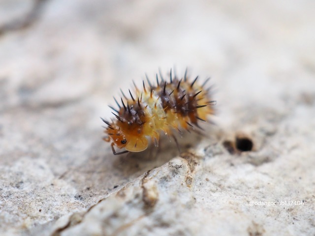 オレンジ色で縁取られた黒色の体に白色のスポットが入りる美しいダンゴムシです。 サイズは5mm~でランダムでお送りいたします。 発送には最善を尽くしますが、生体につき如何なる場合でもノークレーム・ノーリターンでお願いいたします。