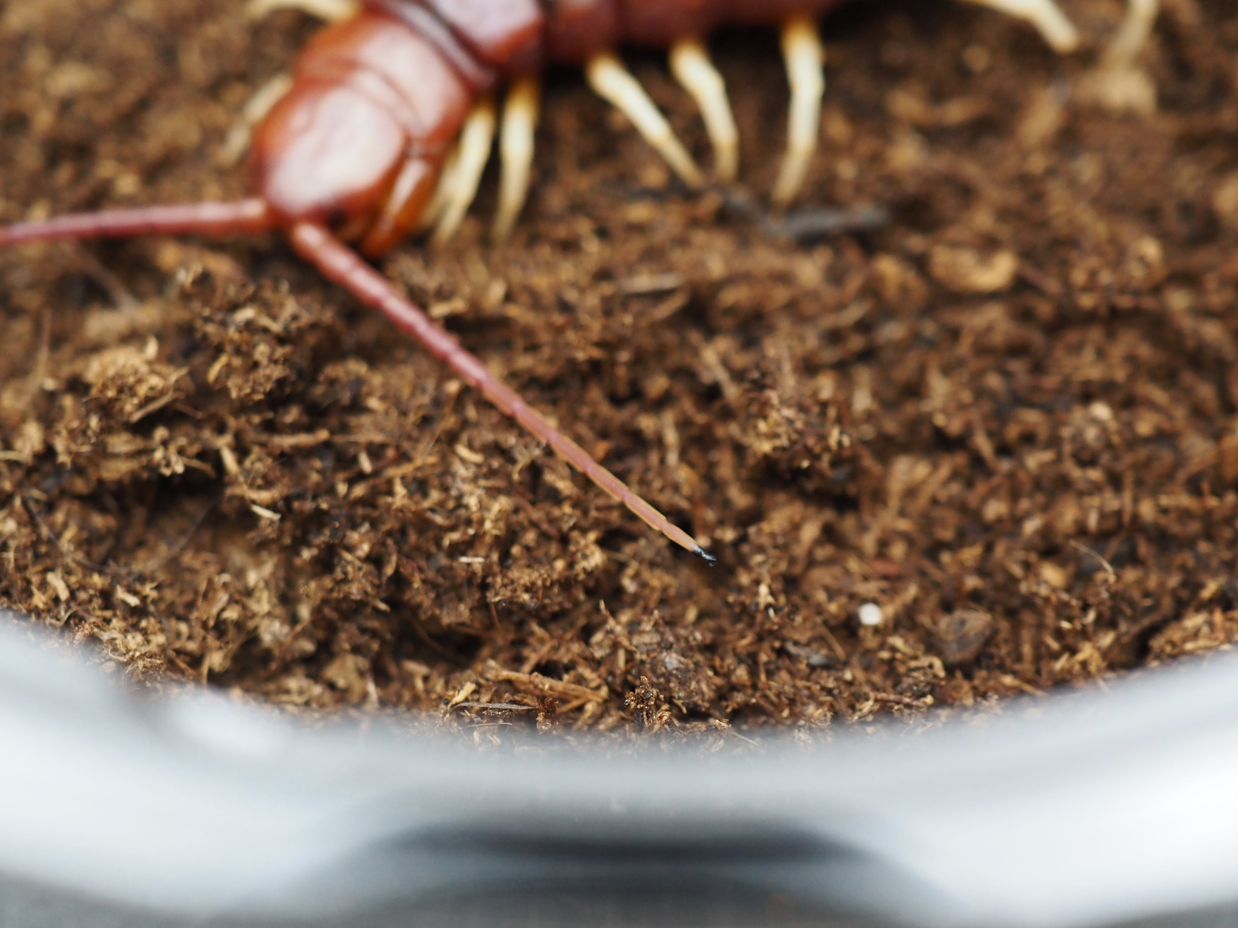 大人気の南米種で成長すると大きな体に独特なカラーリングの歩脚、根元と先端で色の異なる触覚が美しいムカデになります。