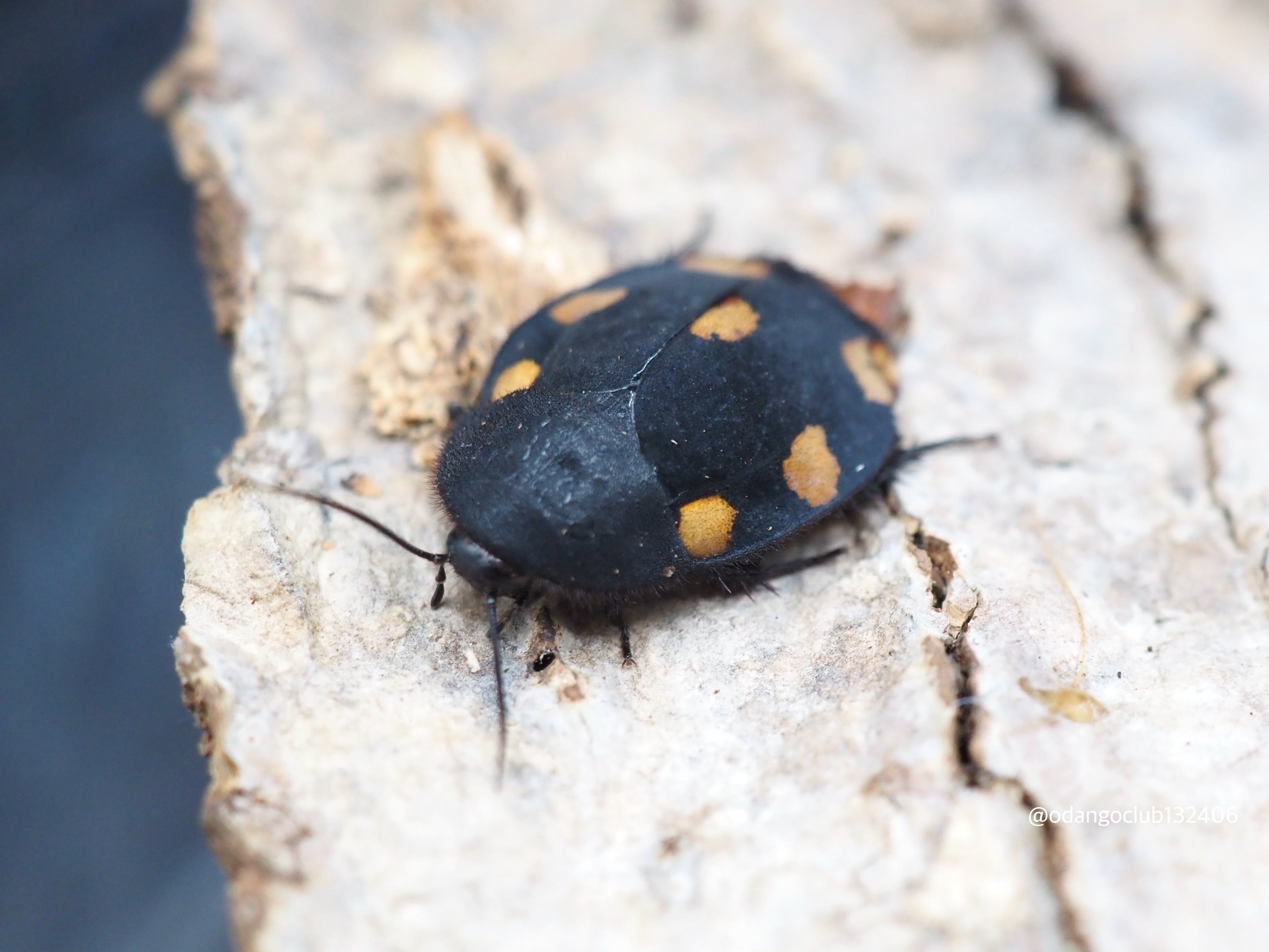黒色の体にオレンジ色のスポットが入るゴキブリです。