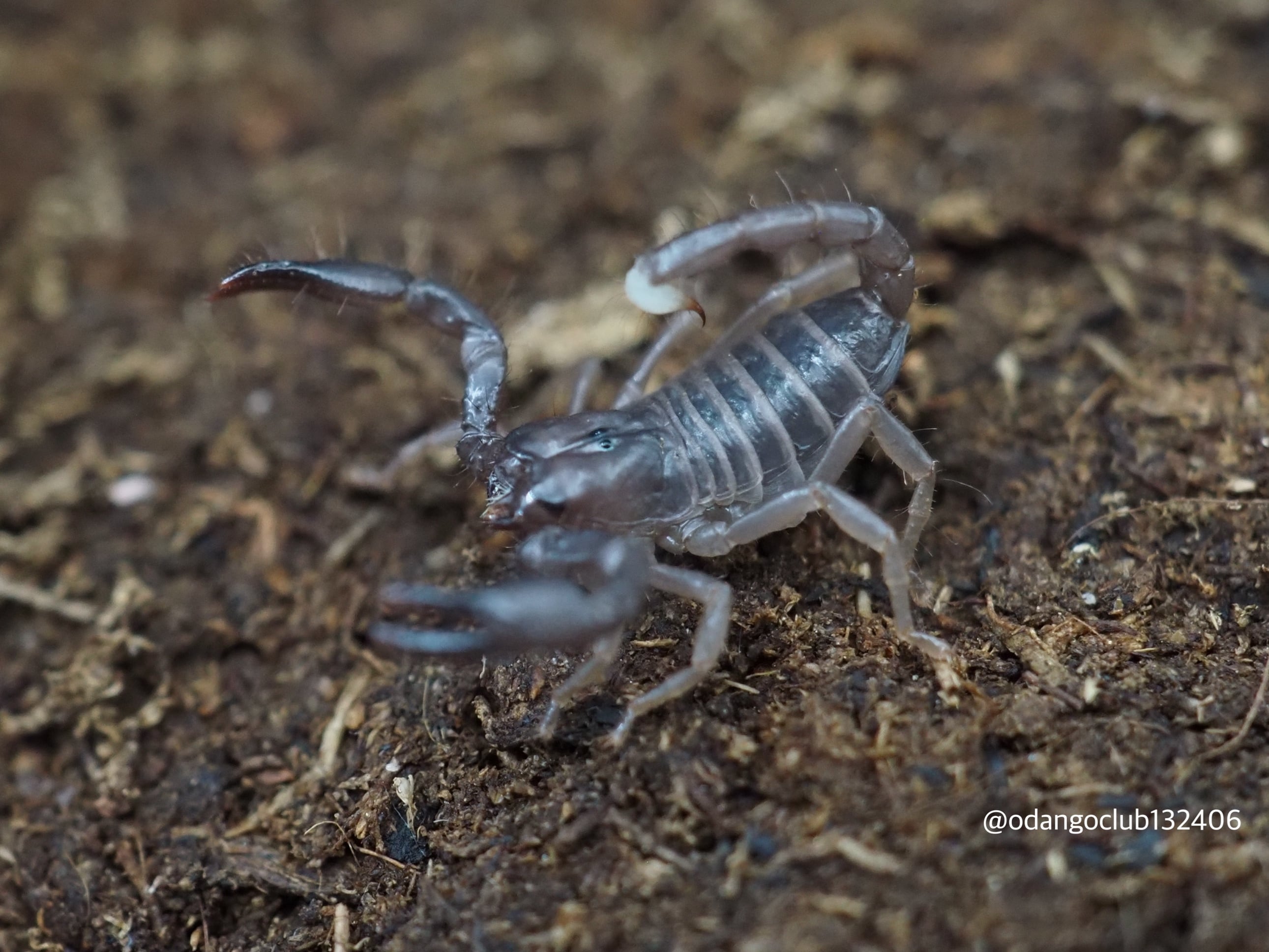 成長すると胴体は焦げ茶色で脚は黄色の美しいサソリになります。