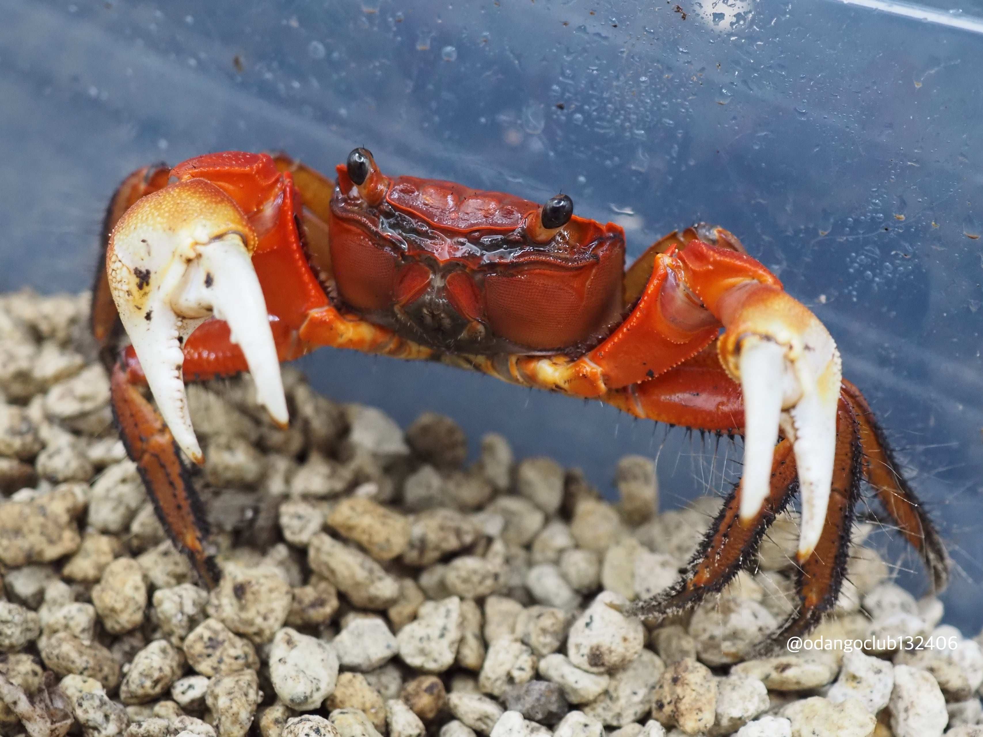 赤みを帯びた体が美しいカニです。