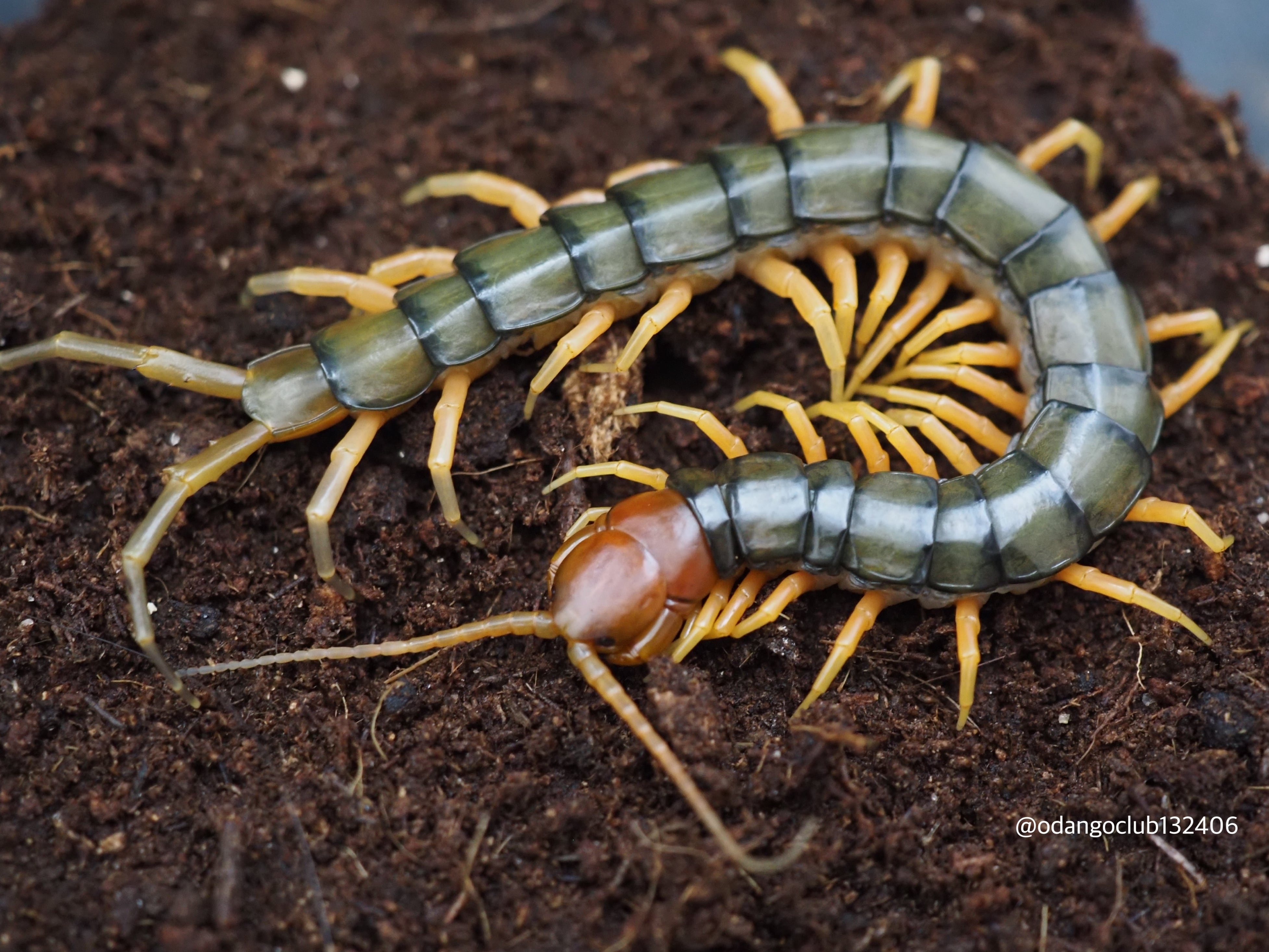 オリーブグリーンの背中にほんのりオレンジがかった脚が美しい個体です。