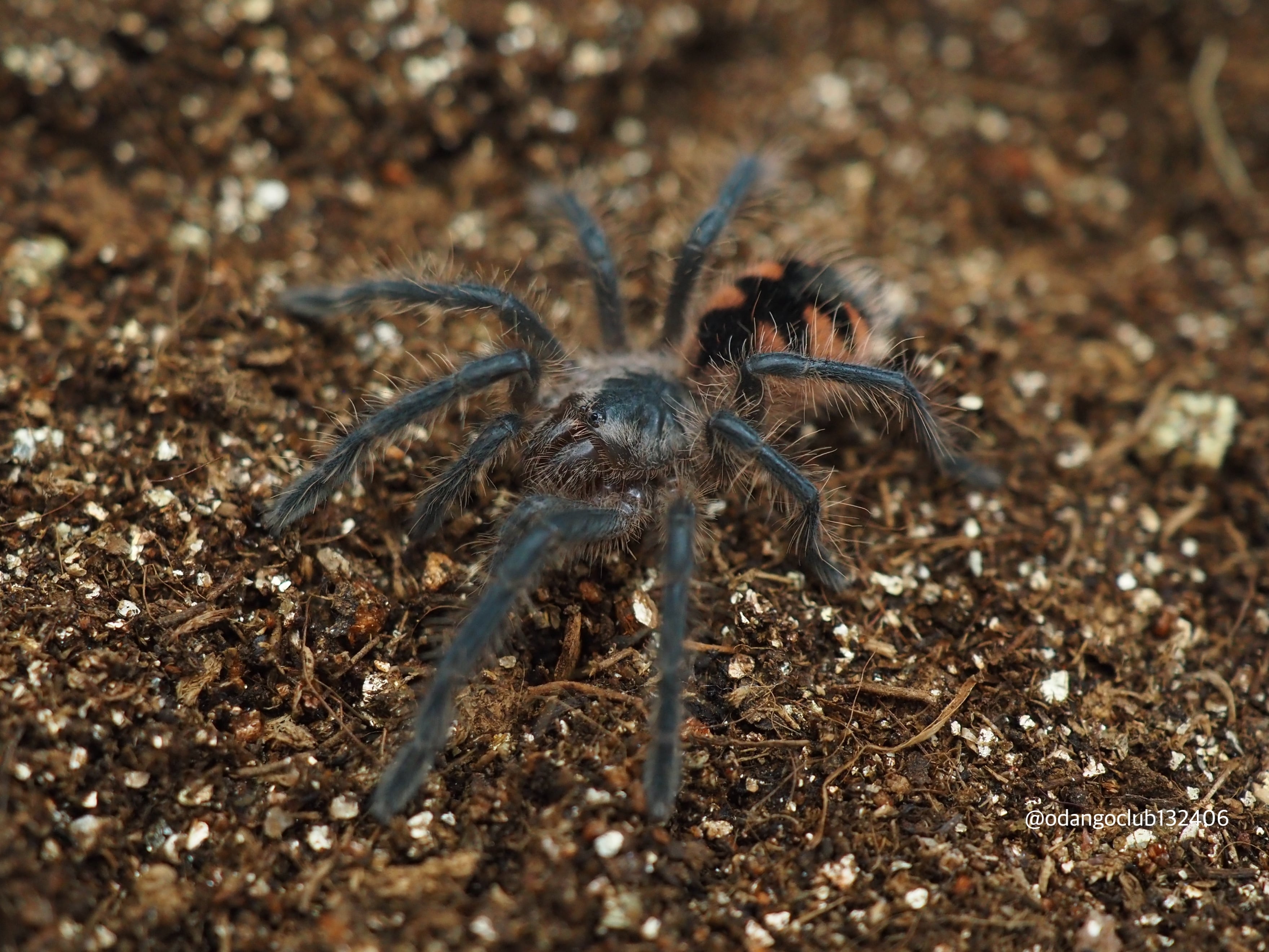 成長すると♀は上品な黒色、♂はド派手な紫色のタランチュラになります。