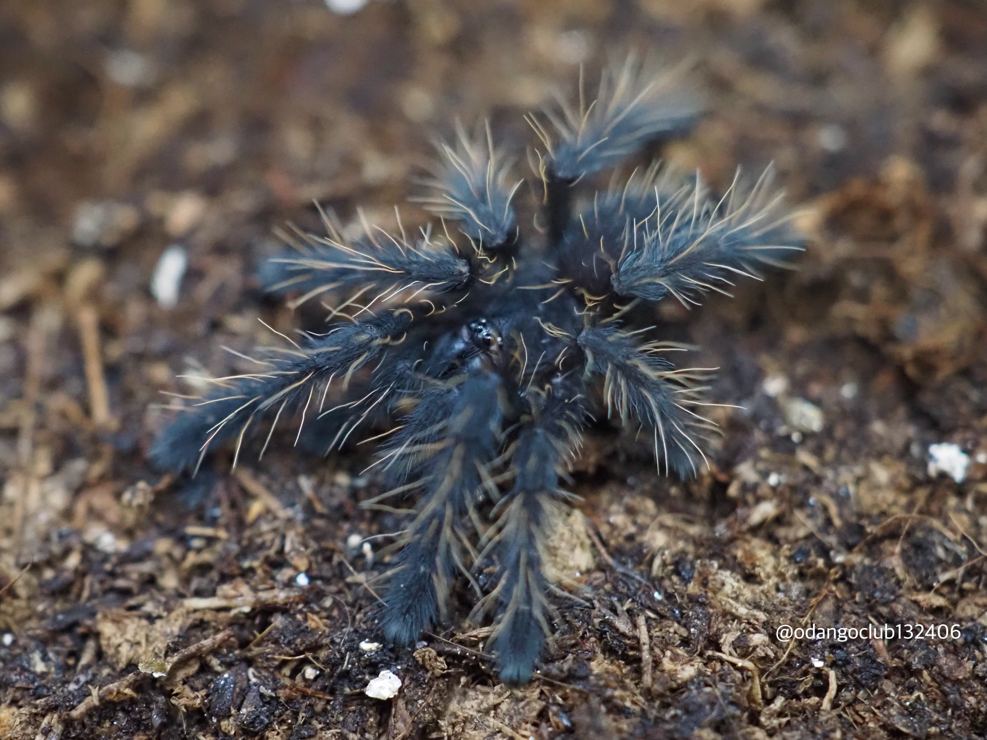 成長すると歩脚、腹部が黒色になり、背甲が緑色になる大変美しいタランチュラになります。