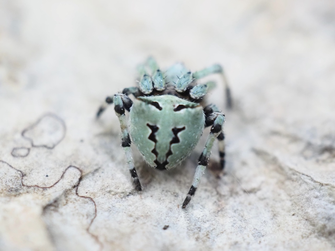 野生下では地衣類や苔に擬態しており、とても美しい翡翠色をしております。