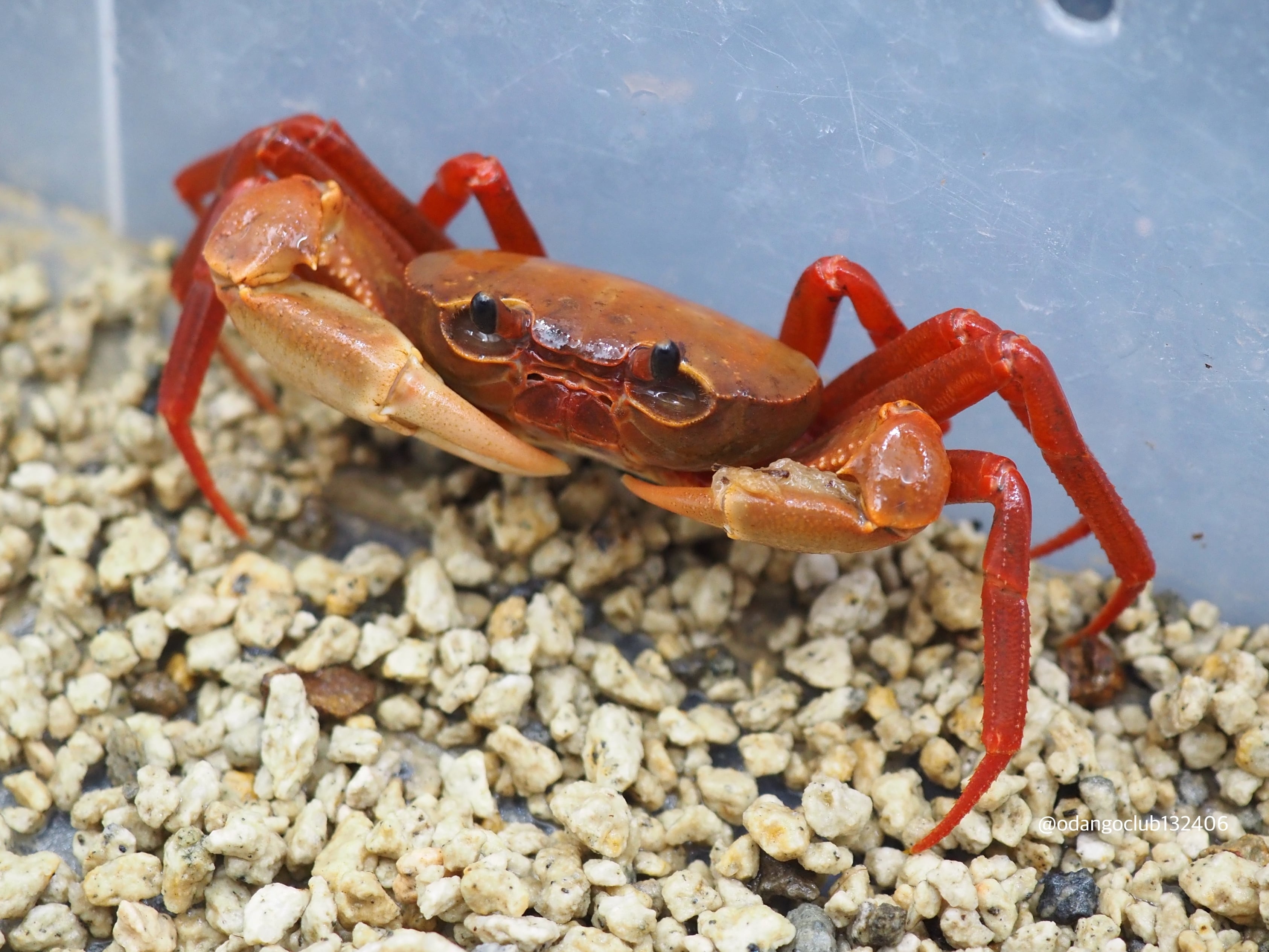 全身オレンジ色でハサミの先が白くなる美しいカニです。