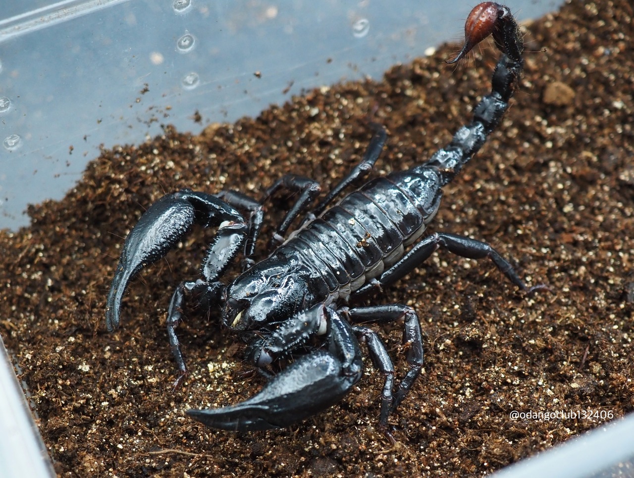 長くシャープな鋏が特徴的なサソリです。