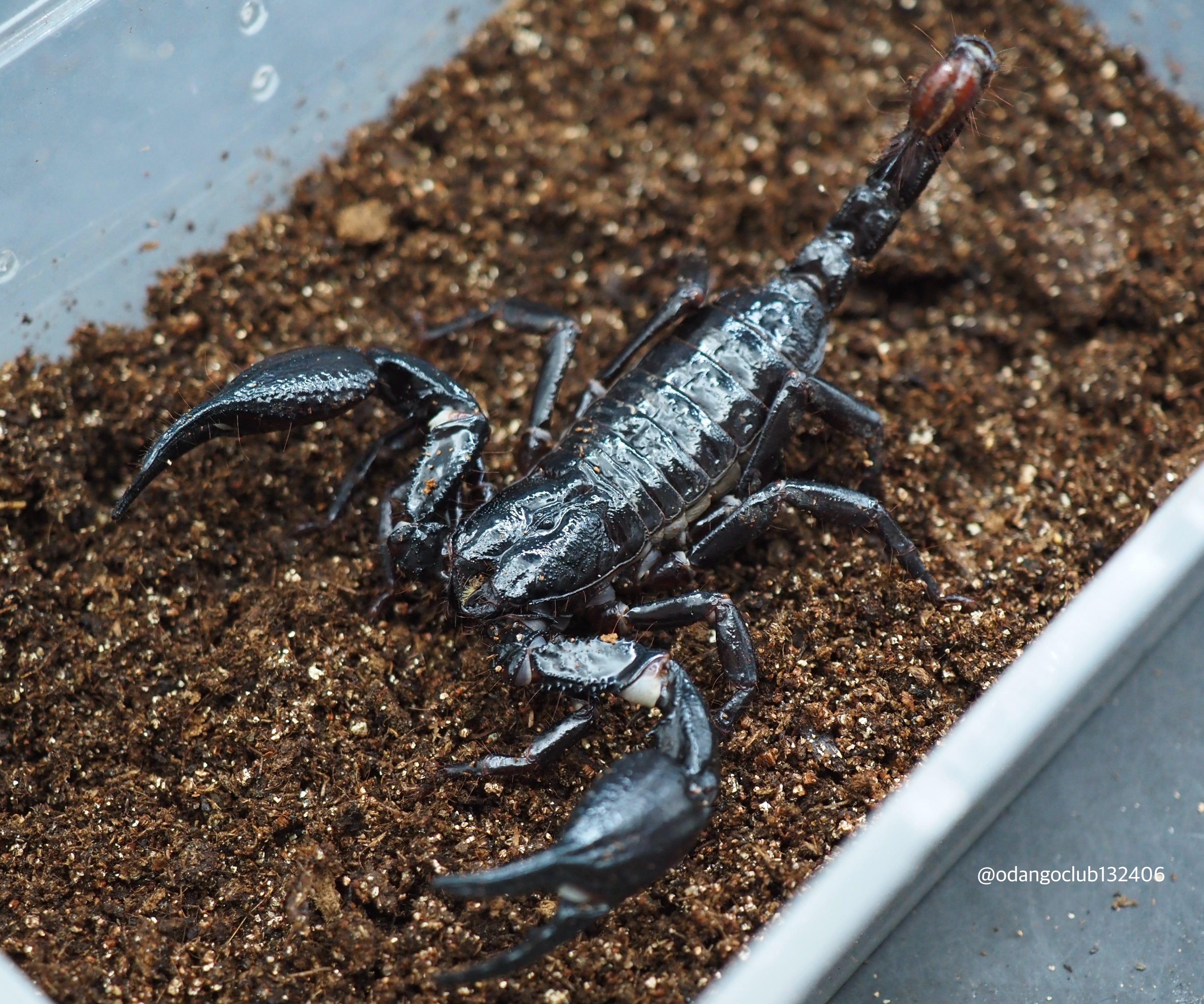 長くシャープな鋏が特徴的なサソリです。