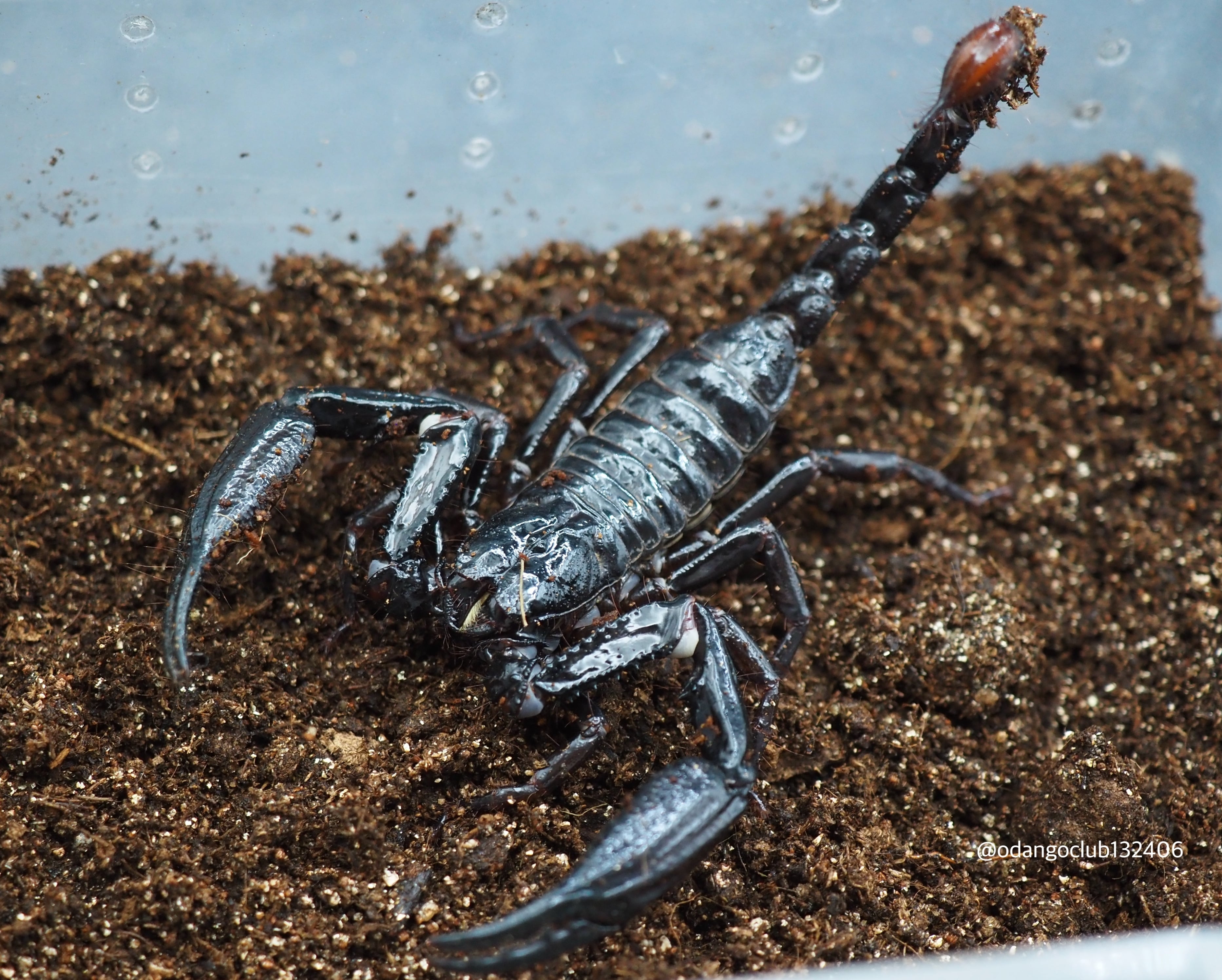サイズは鋏を除いて尾の先端まで9cmほどで画像の個体をお送り致します。
