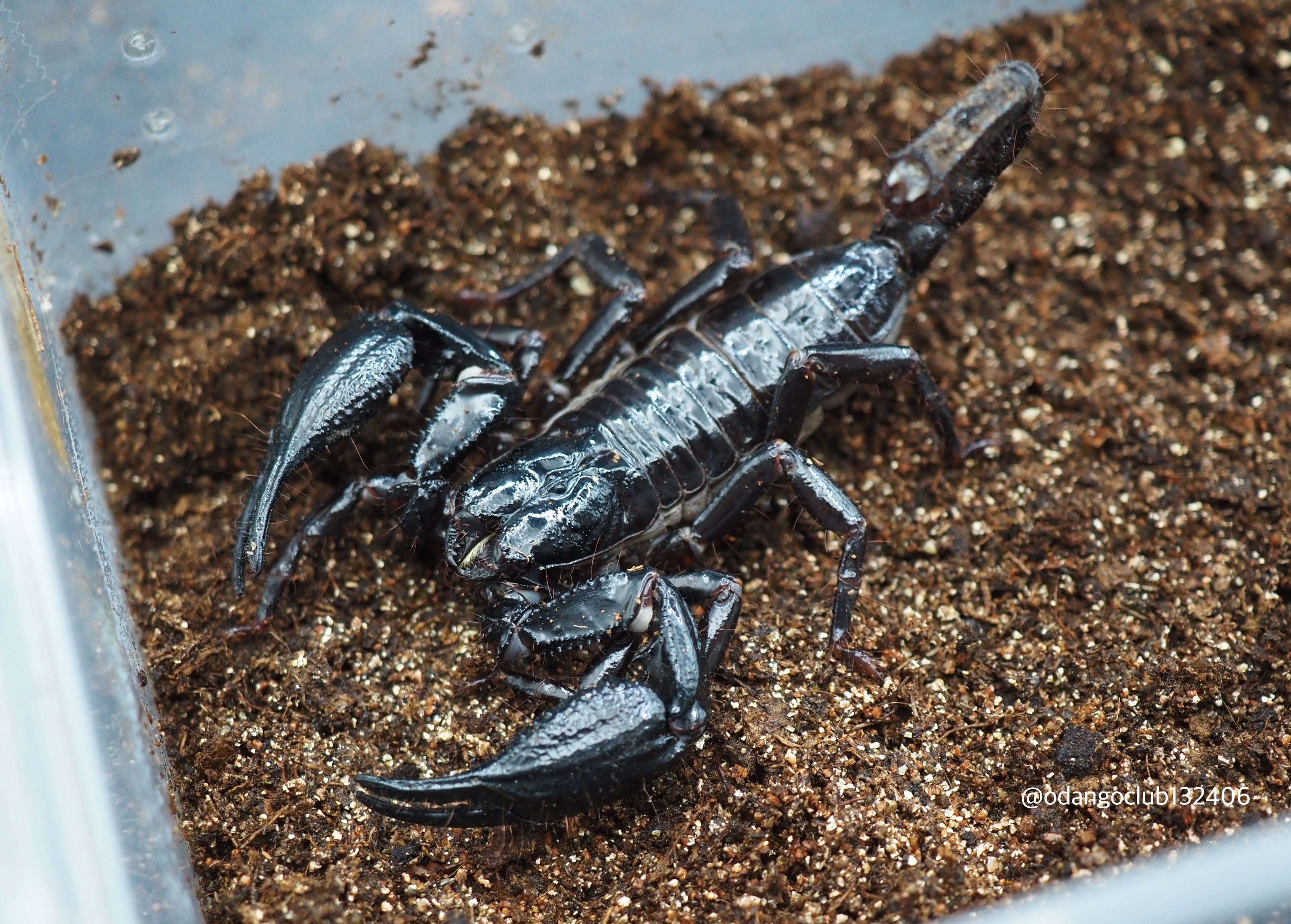 長くシャープな鋏が特徴的なサソリです。