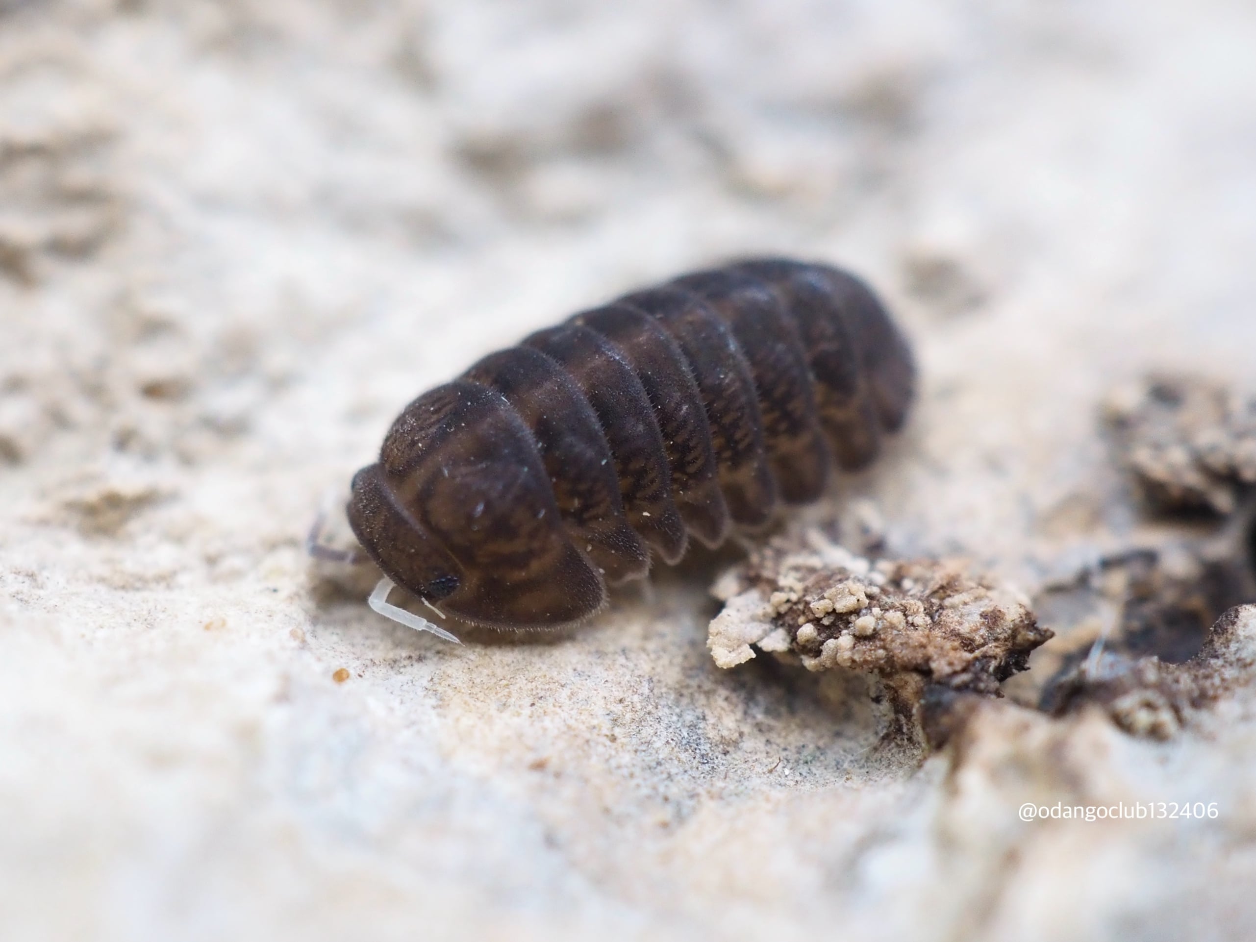 マットブラックの体にうぶ毛のような毛が生えている可愛いダンゴムシです。