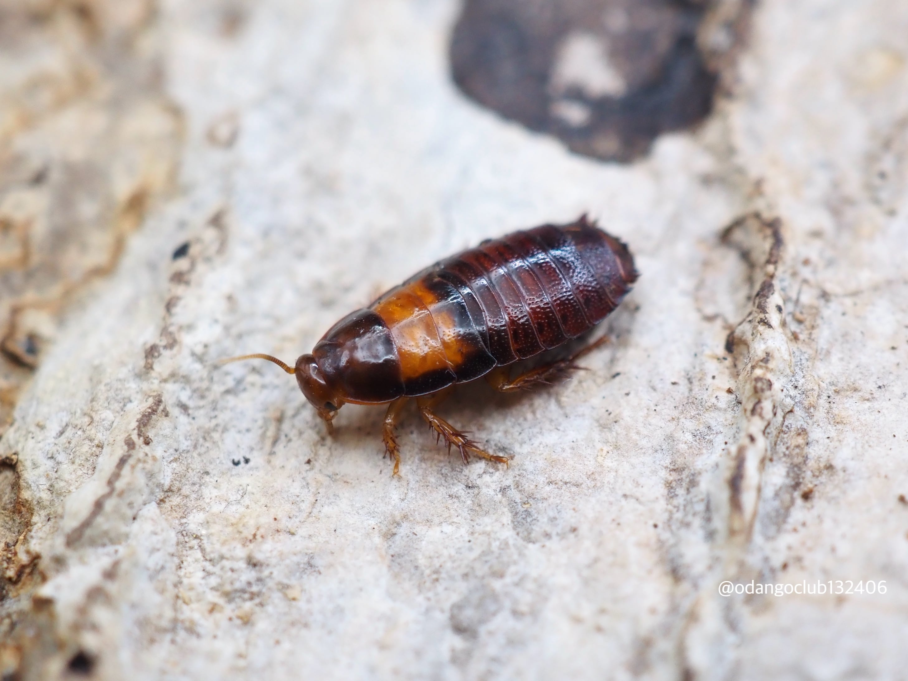 幼虫は胸部にオレンジ色の模様が入り、成虫は赤みを帯びた黒色の羽が生える美しいゴキブリです。