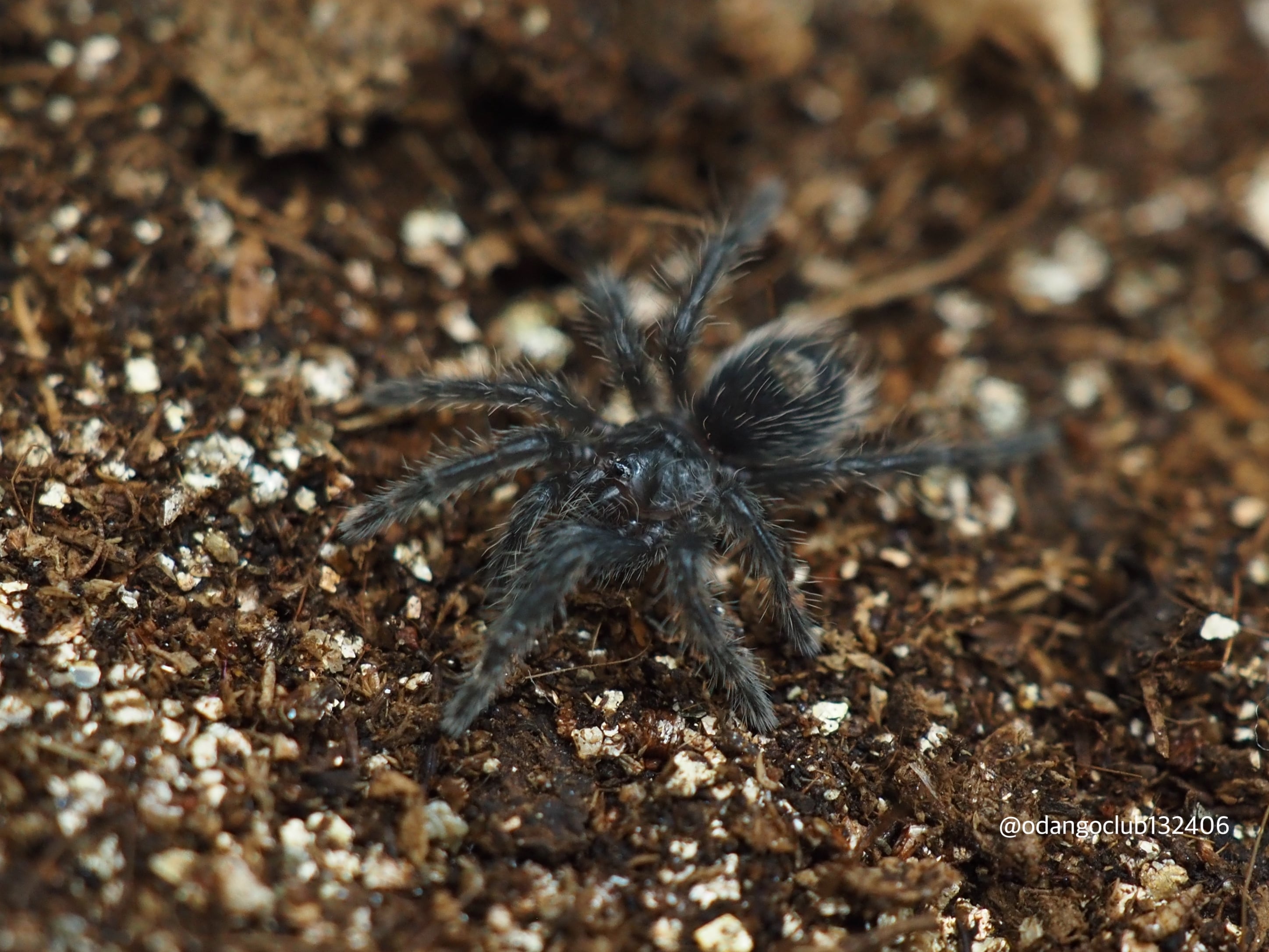 成長すると背甲と歩脚が青紫色になり、腹部に赤色の毛が生える美しいタランチュラになります。