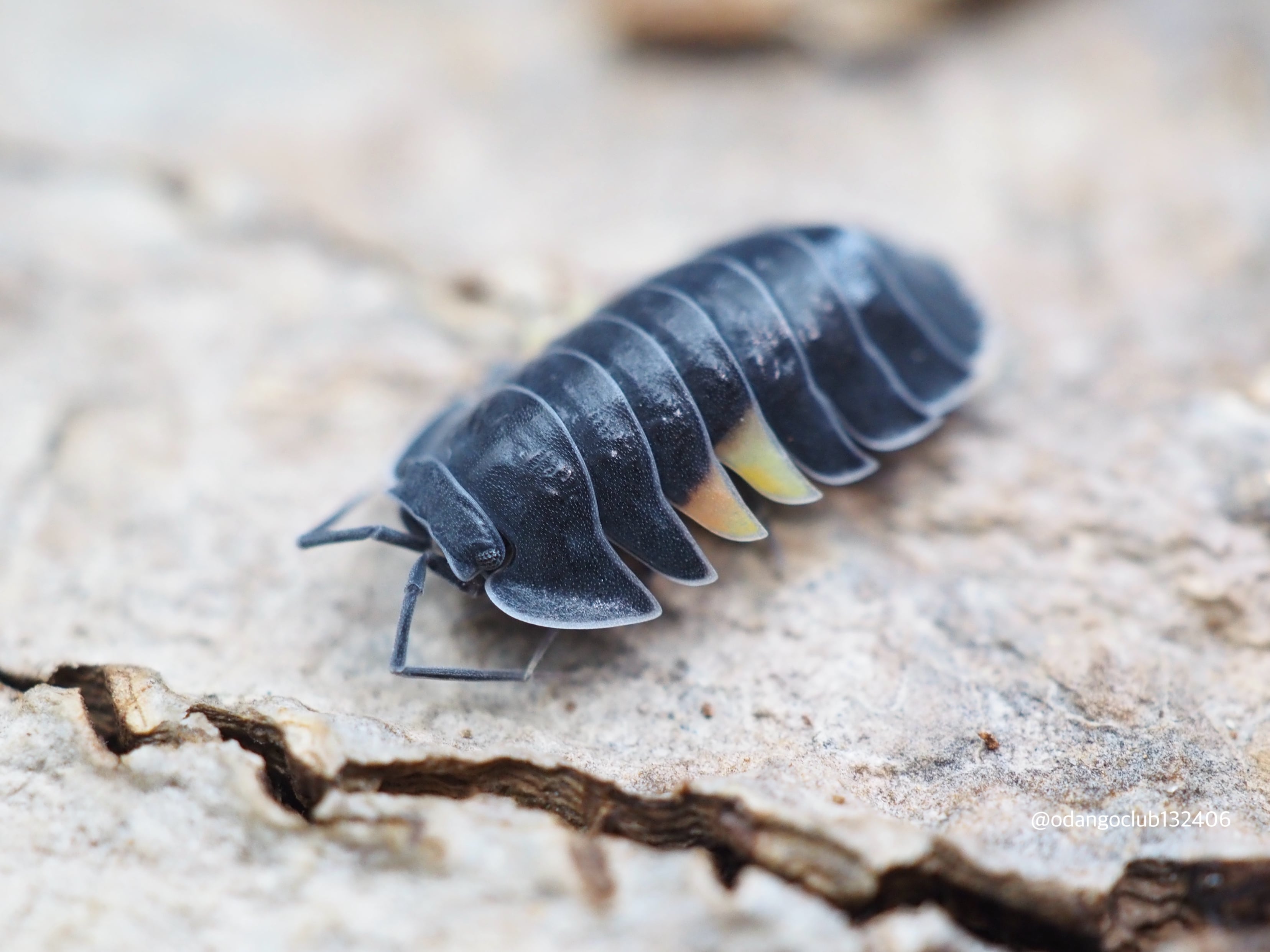 黒色の体に黄色の羽のような模様が入る美しいダンゴムシです。