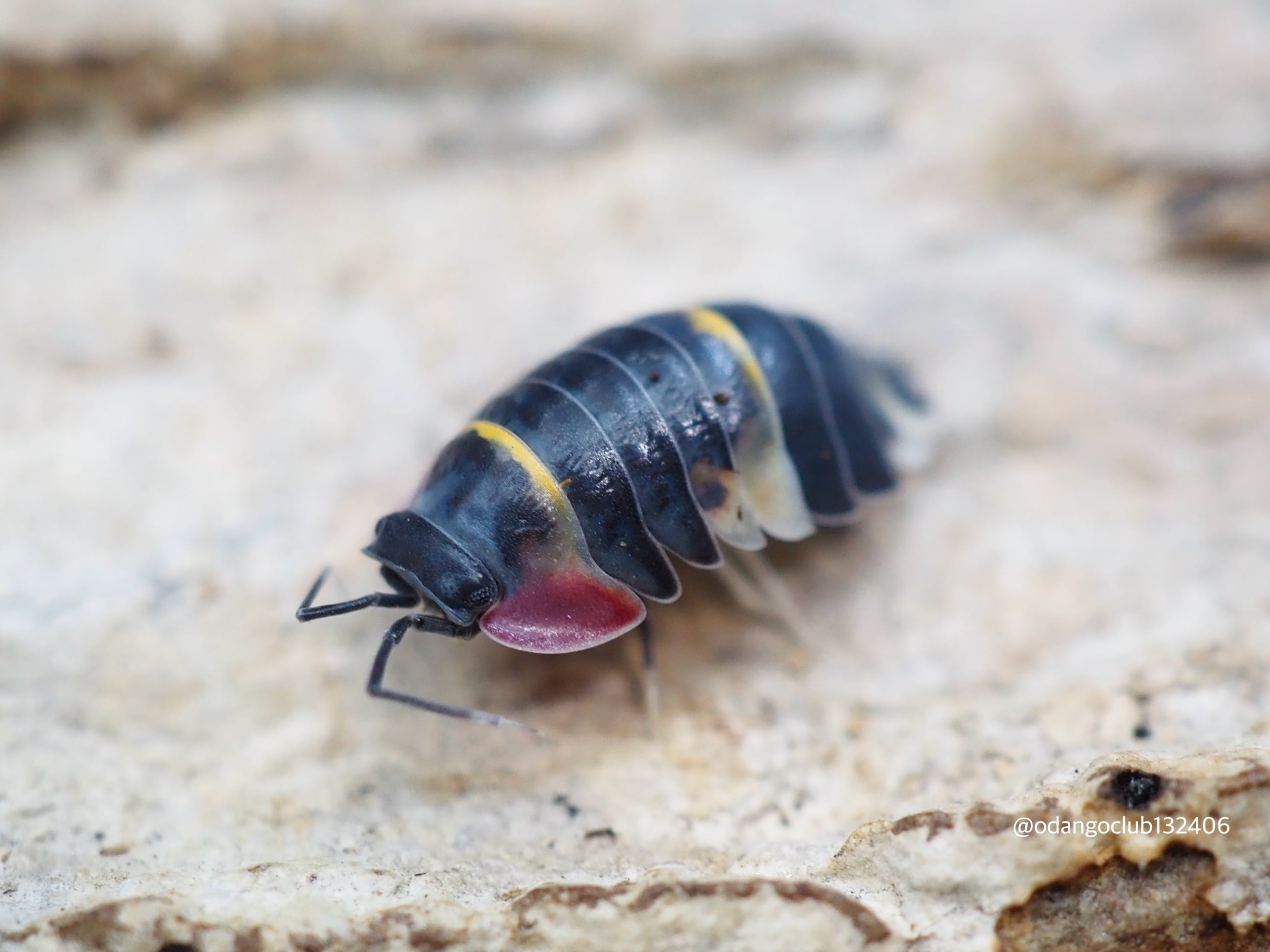 黒色、赤色、黄色、白色の4色から構成される体色の美しいダンゴムシです。