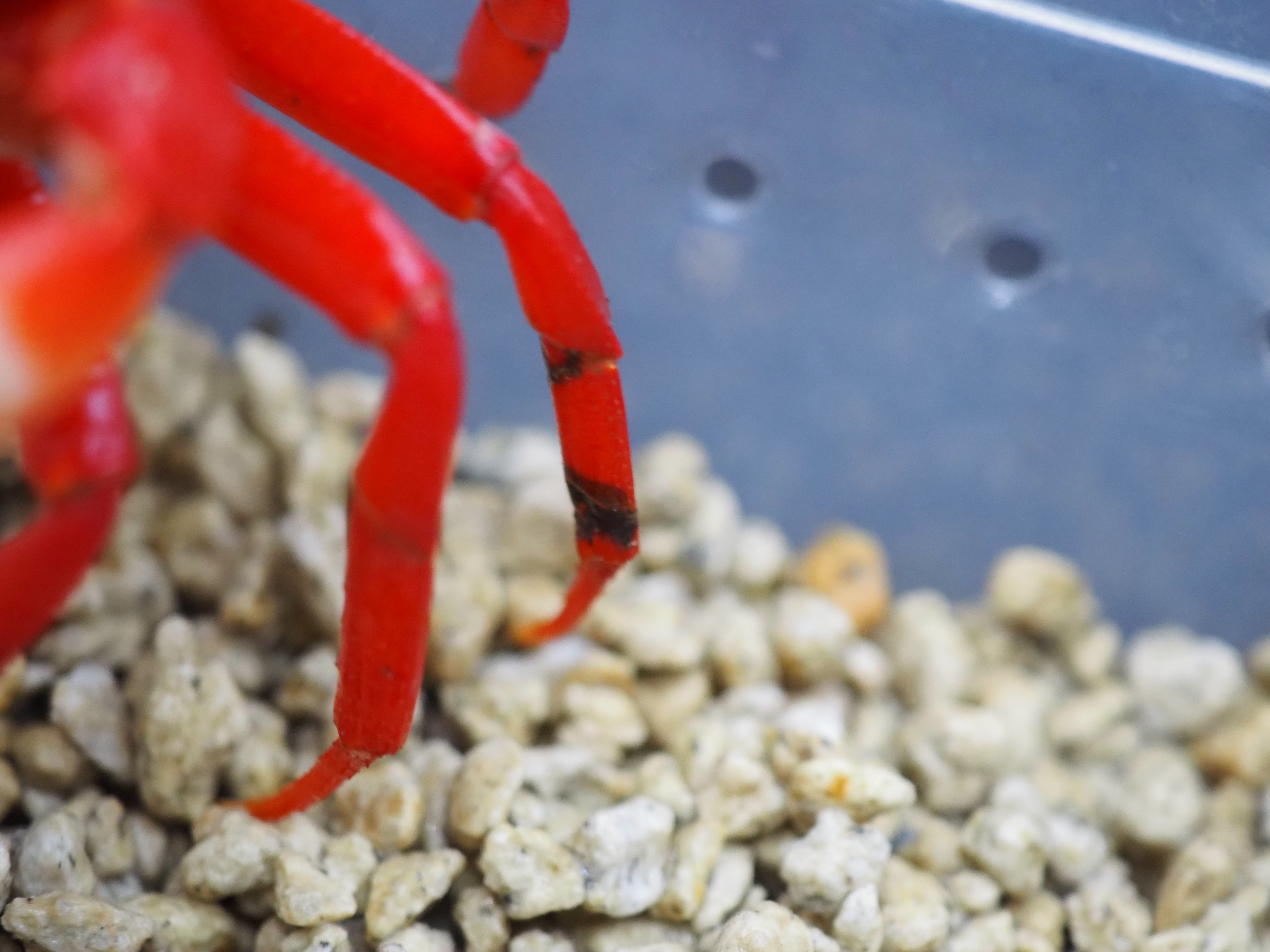 歩脚の1本が黒くなっているところがございますが、脱皮することで改善するかと思います。