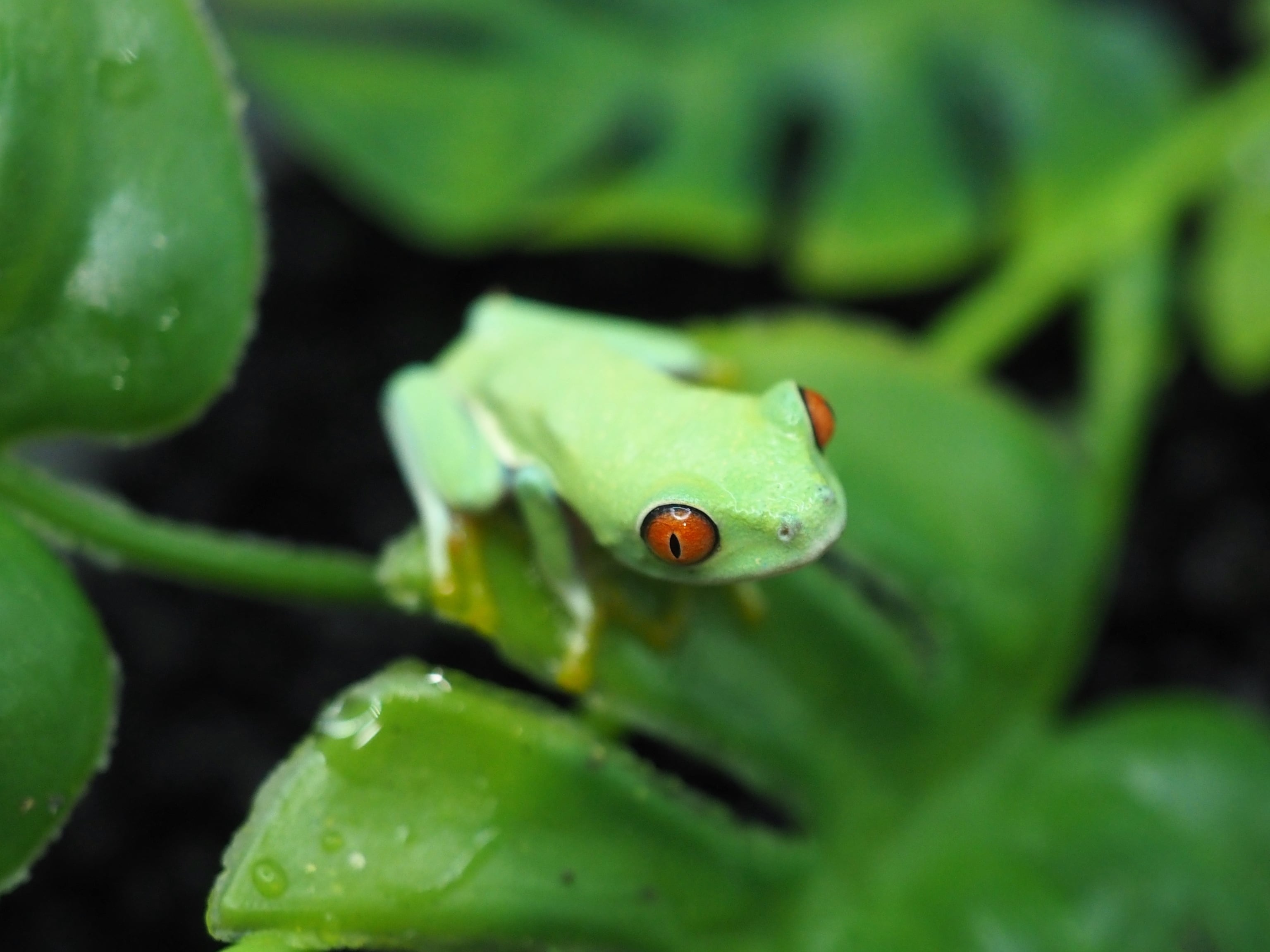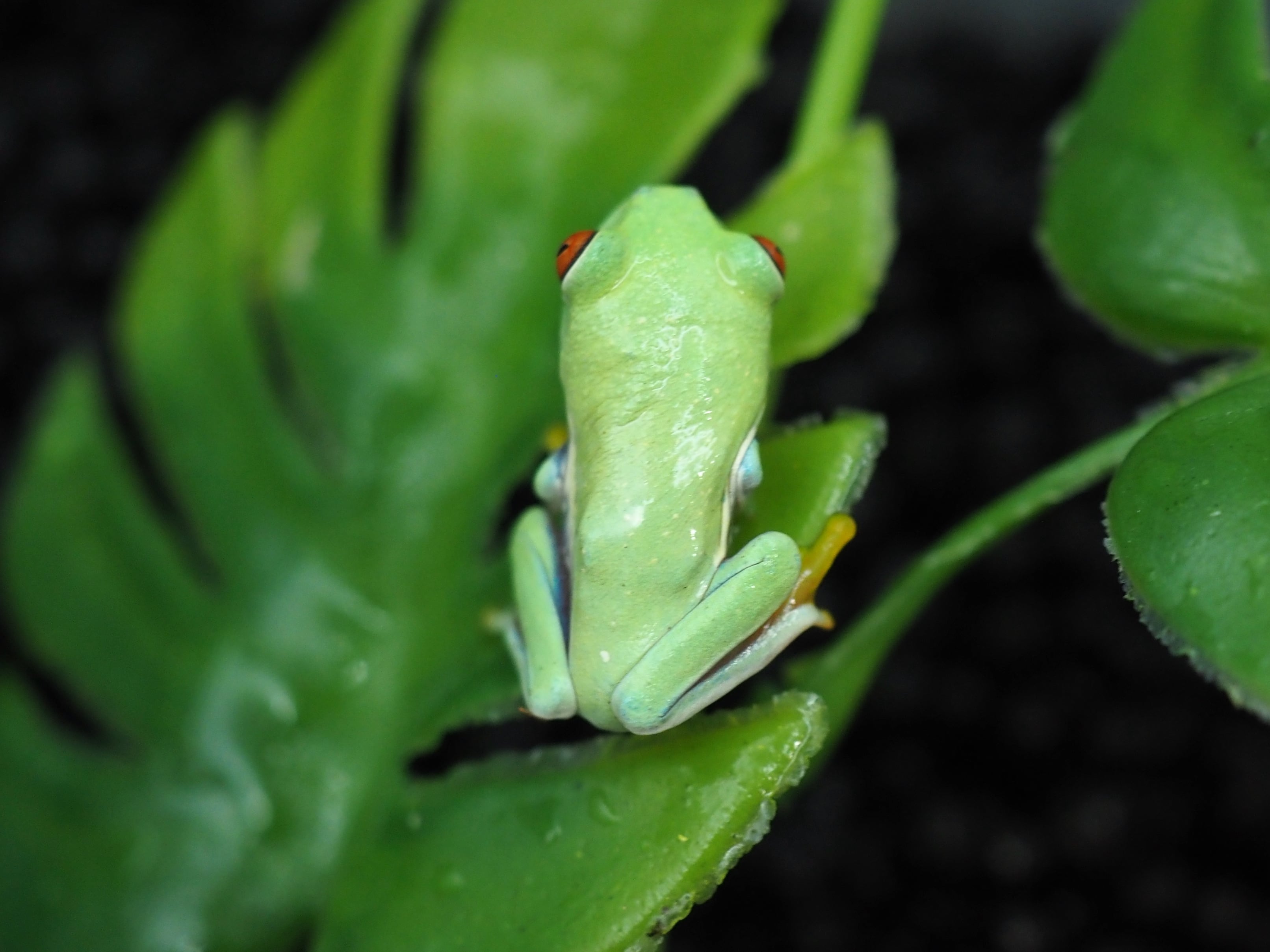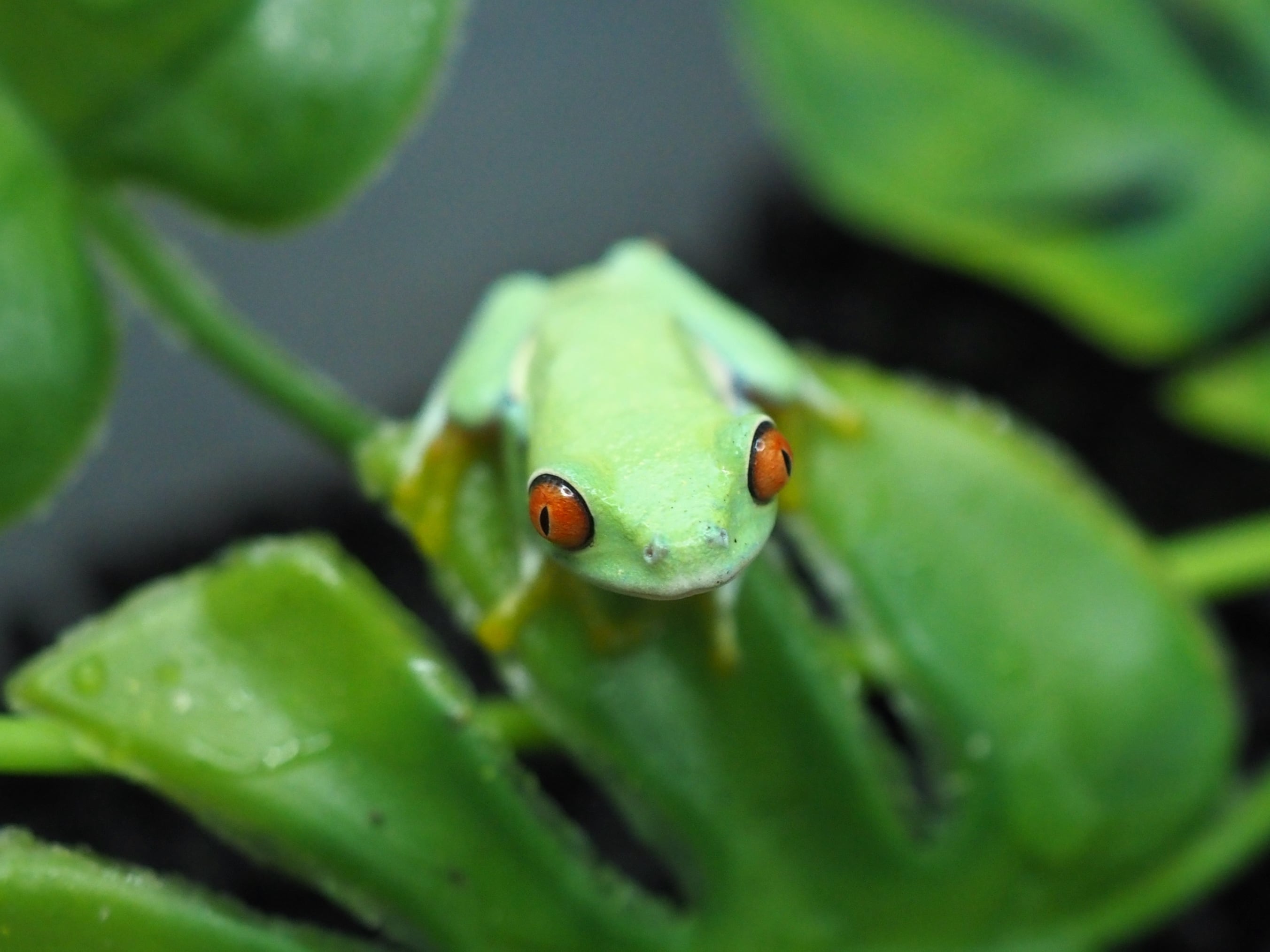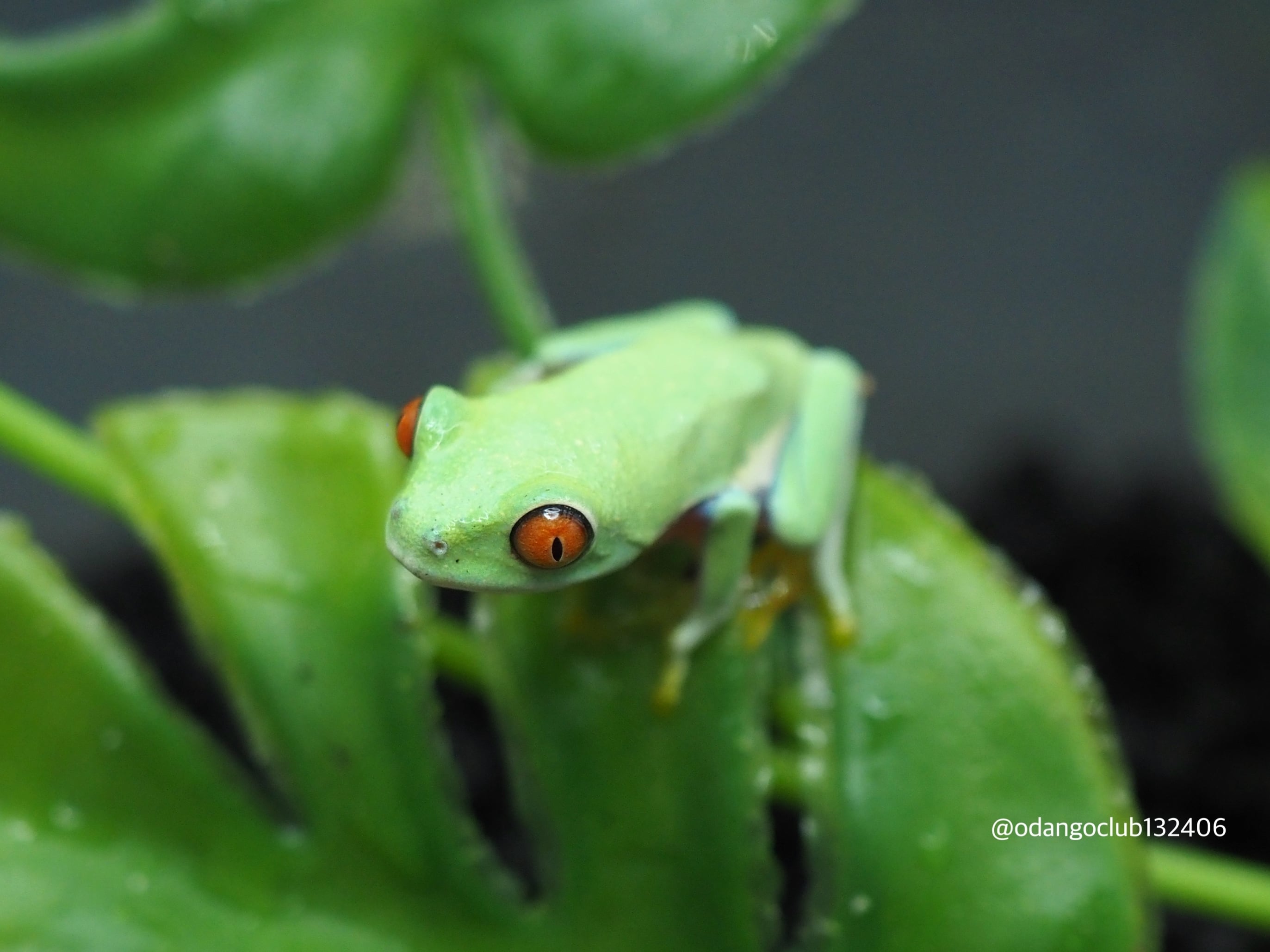 黄緑色の体に赤色の目が特徴的な可愛いカエルです。