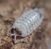 透明感のある白い体にオレンジっぽいスポットが入るとても綺麗なワラジムシです。