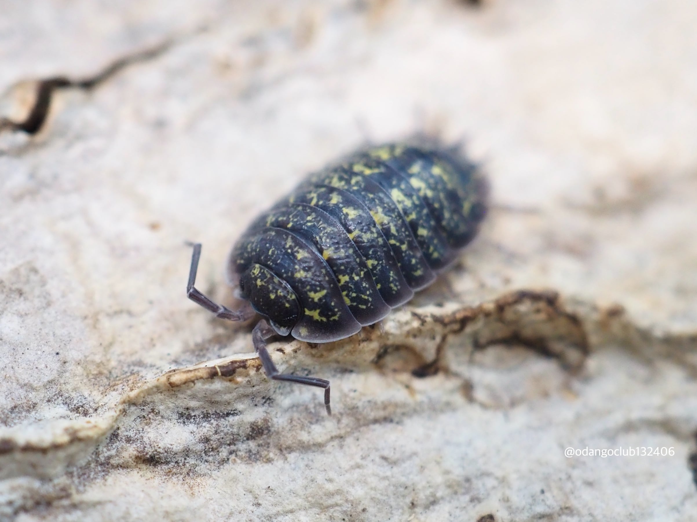 濃い緑の体色スポットが入るとても綺麗なワラジムシです。