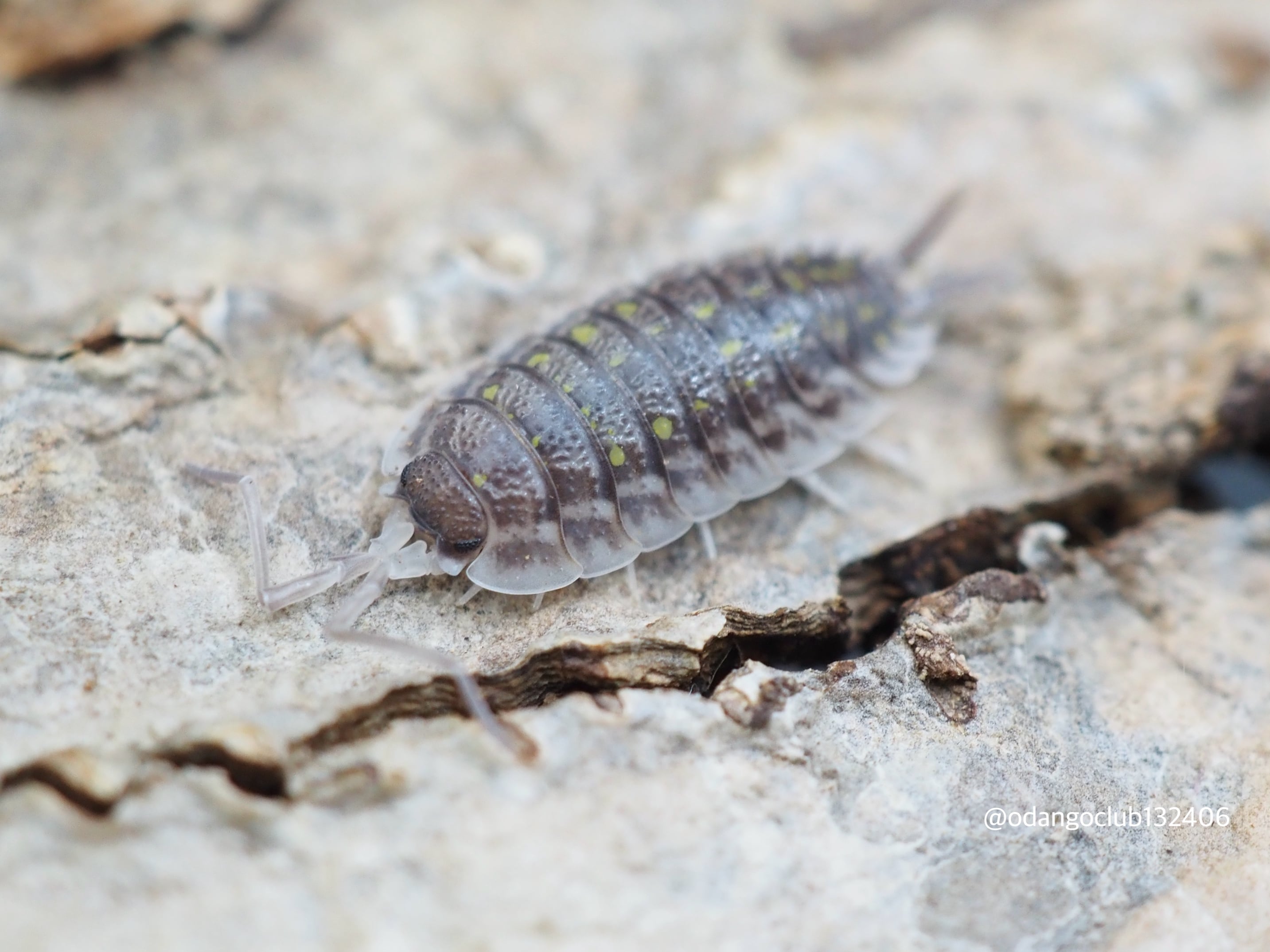 黒に近いグレーの体に黄色のスポットが入る渋カッコ良いワラジムシです。