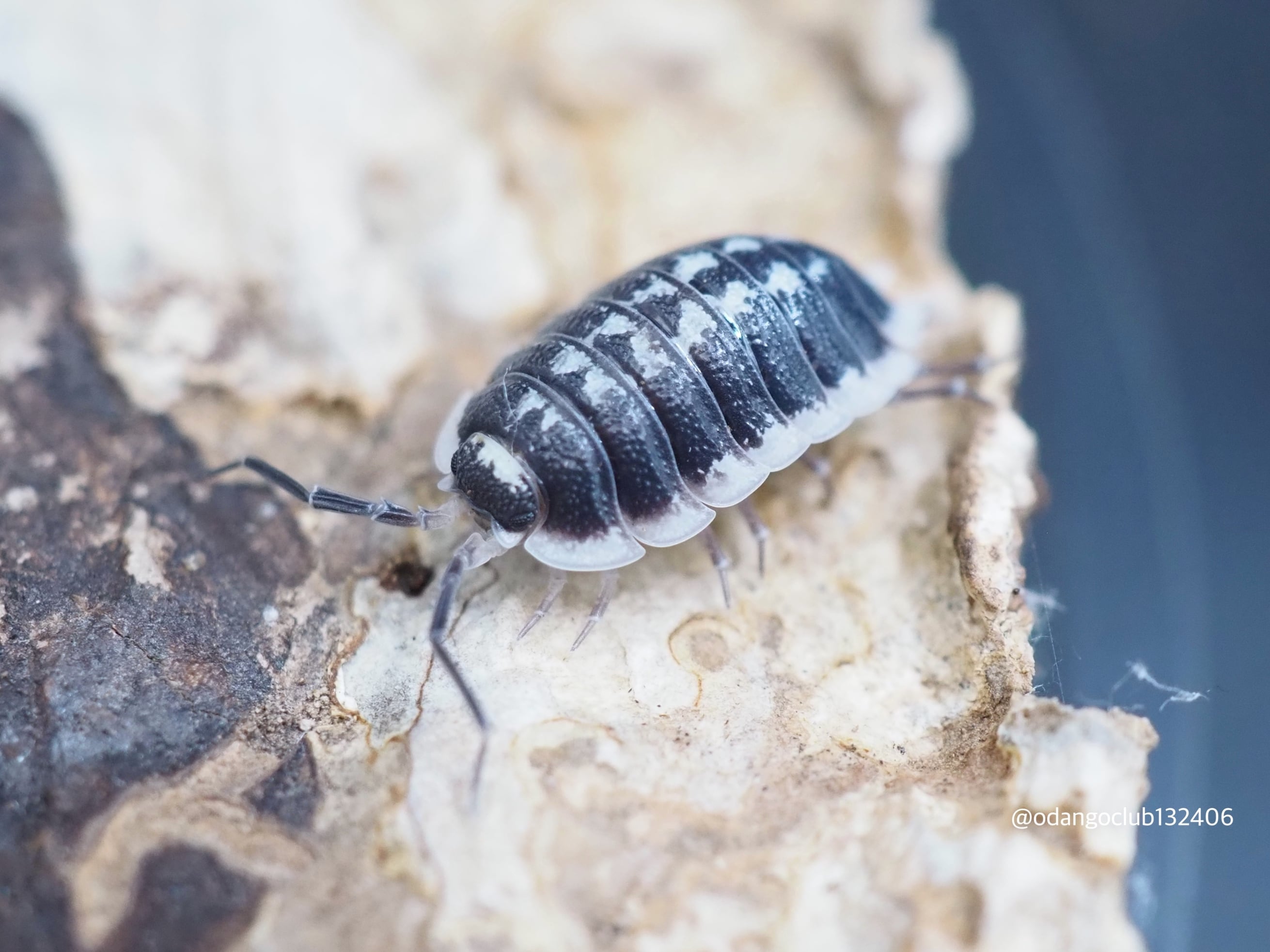 黒い体の背中と縁に白が入ることによりモノクロの体色でありながらとても派手に見えるカッコ良いワラジムシです。