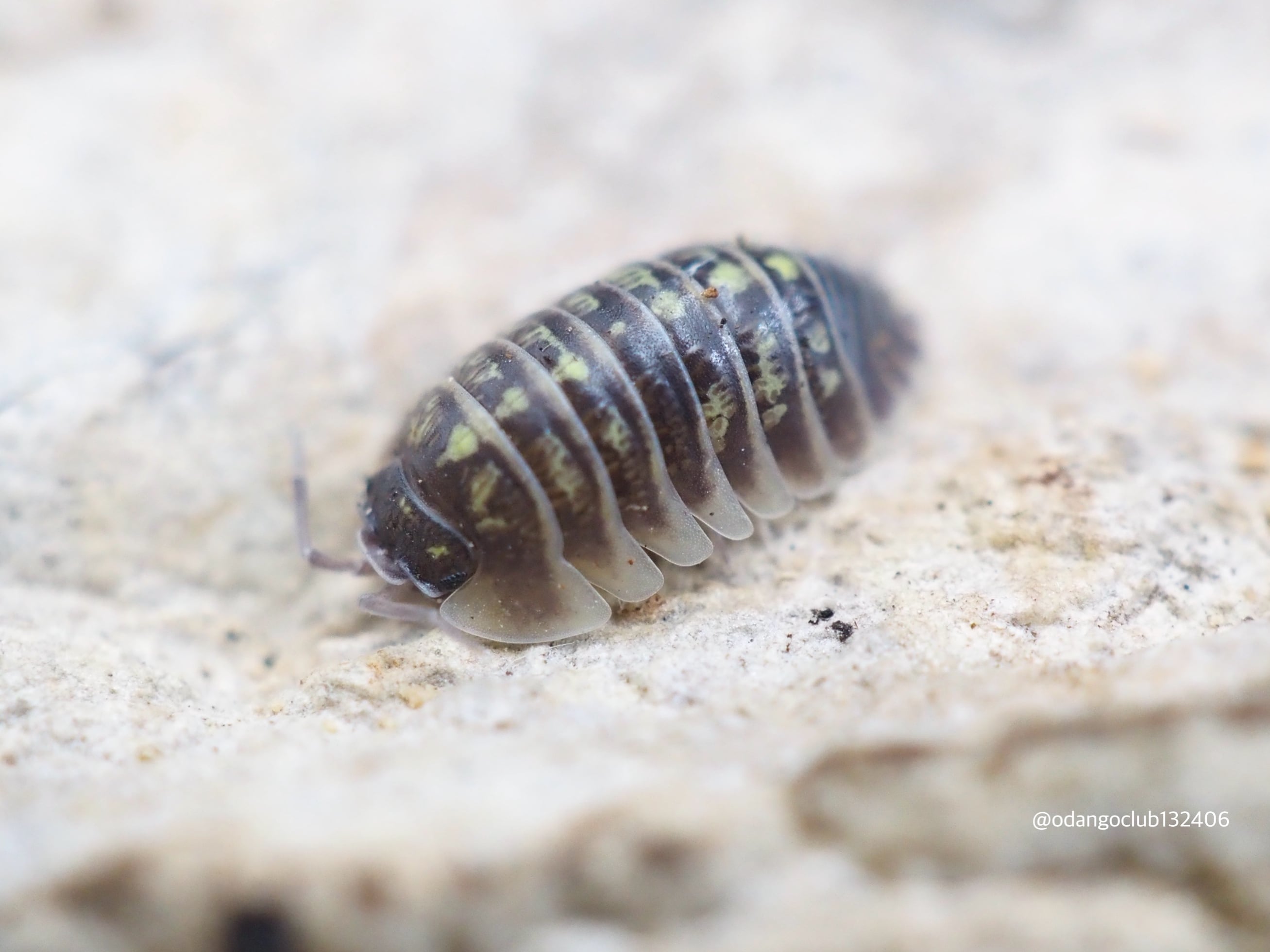 縁が白くなり、背中に黄色のスポットが散りばめられたとても綺麗なダンゴムシです。