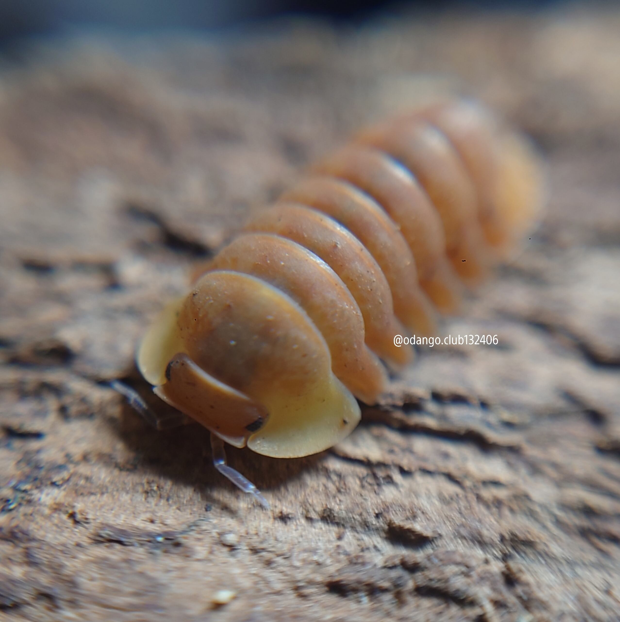 頭部が黄色で体がオレンジの美しいダンゴムシです。