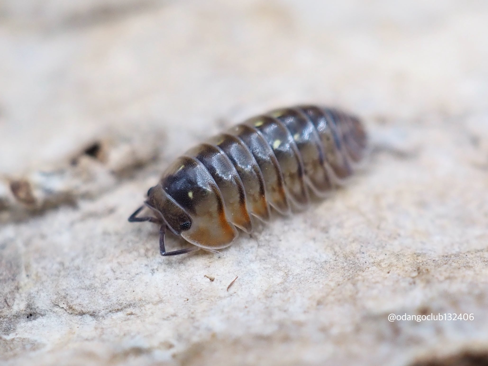 オレンジ、緑、黒、黄色など様々な色が体に入っておりとても美しいダンゴムシです。