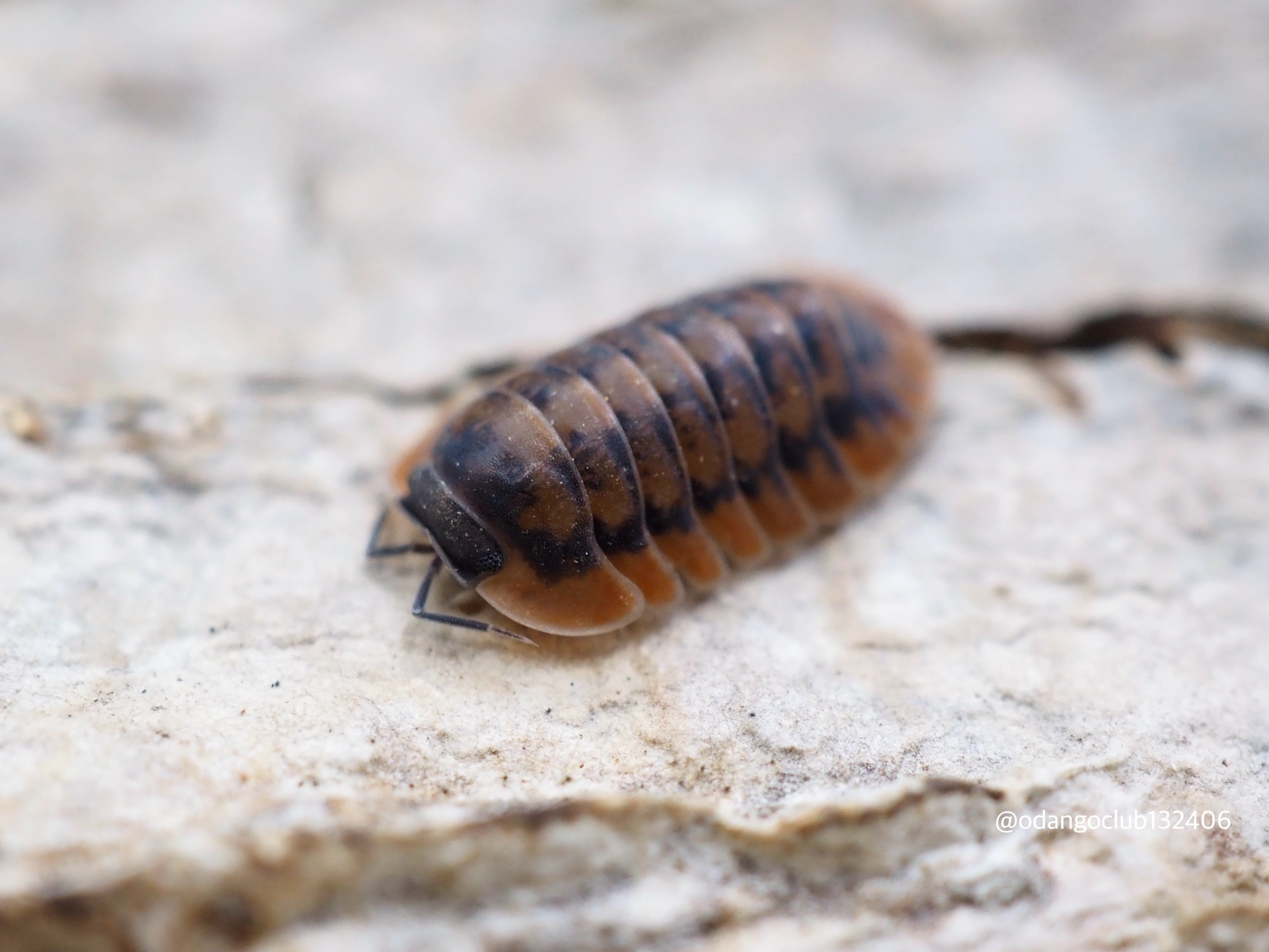 縁にオレンジが入り黒のバンドが入る美しいダンゴムシです。