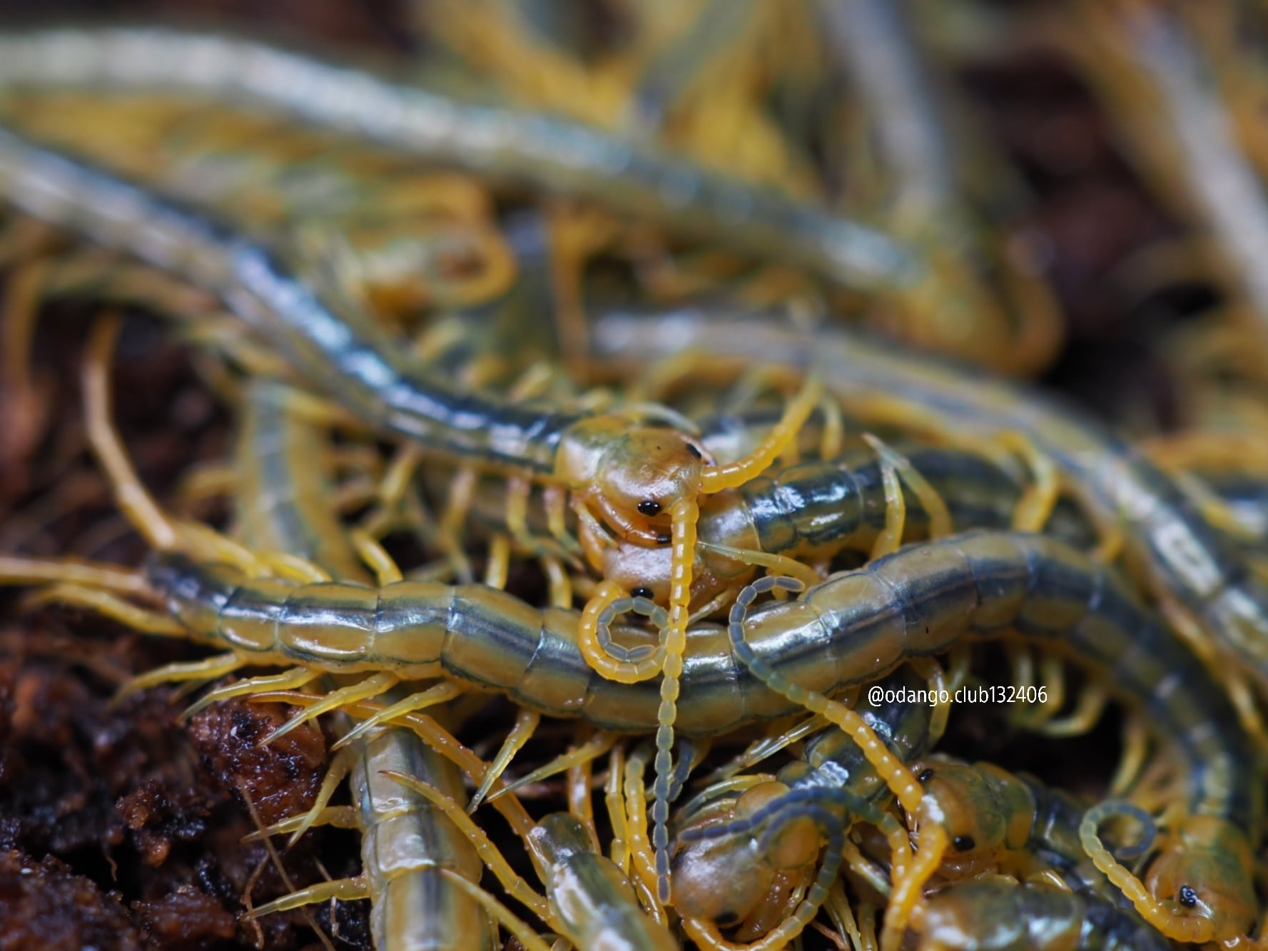 成長するとオレンジレッグや濃い黄色の脚が映えるムカデになります。