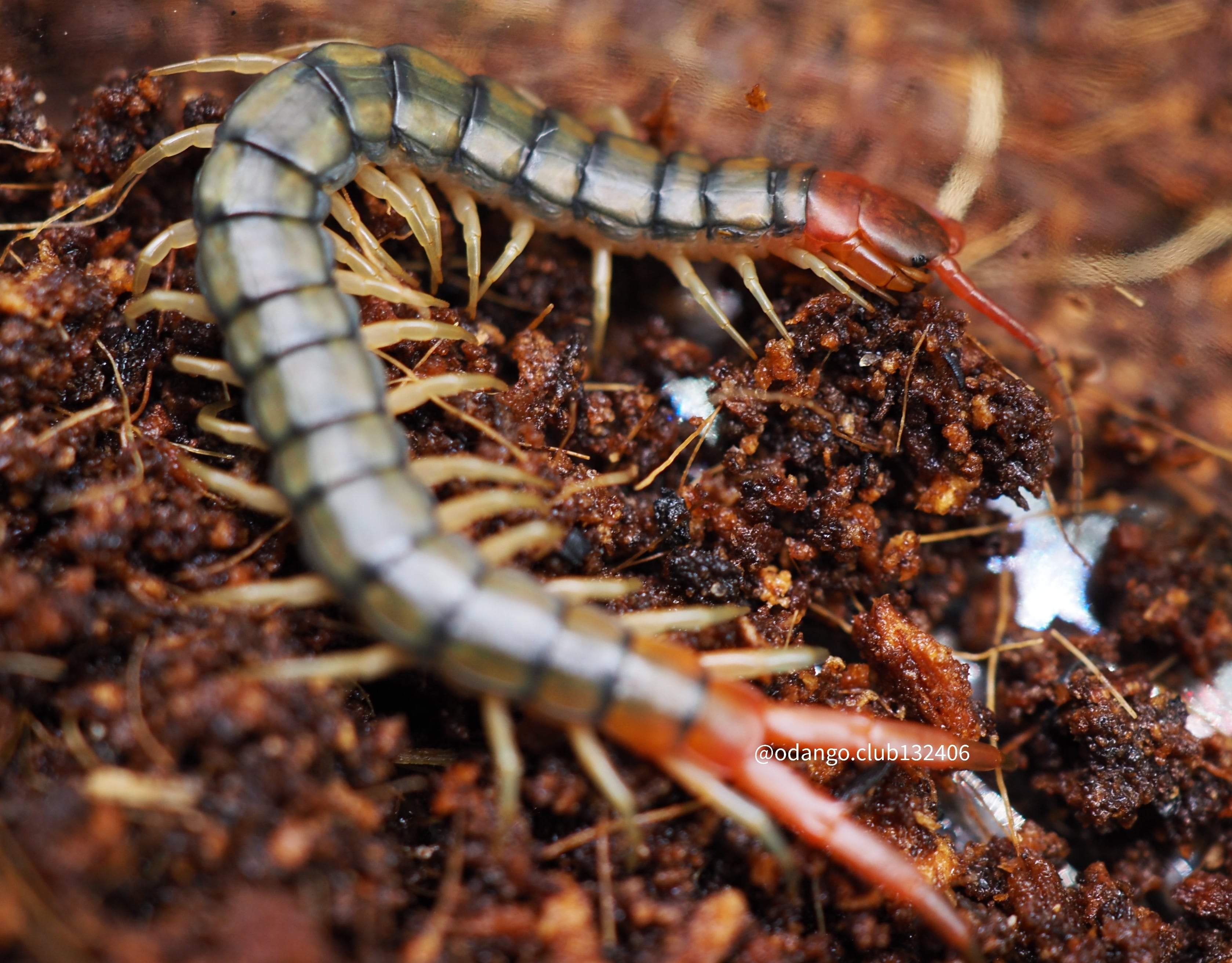 カラーバリエーションが豊富なタイワンオオムカデですが、この個体は全体的に暗い体色です。