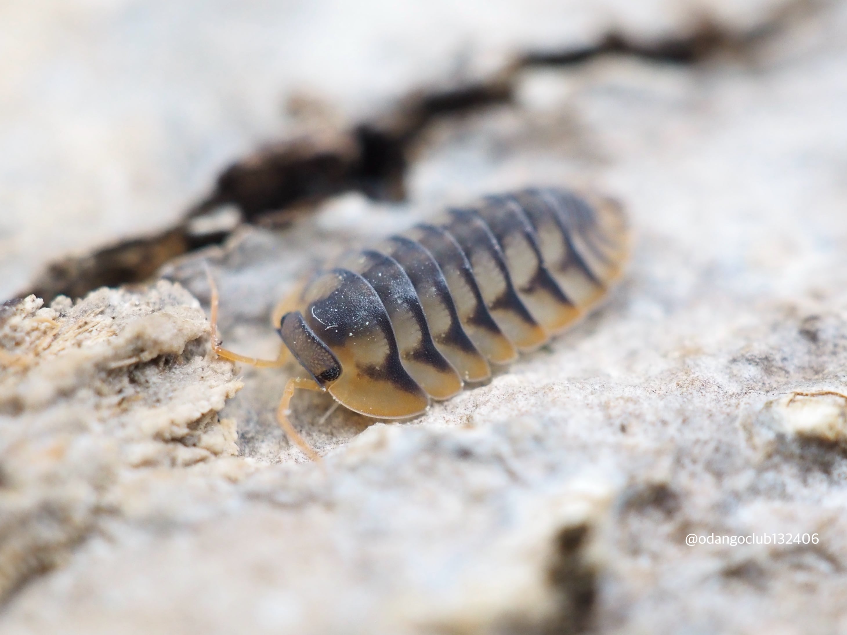 頭部がオレンジで黄色の体に模様が入る綺麗なダンゴムシです。