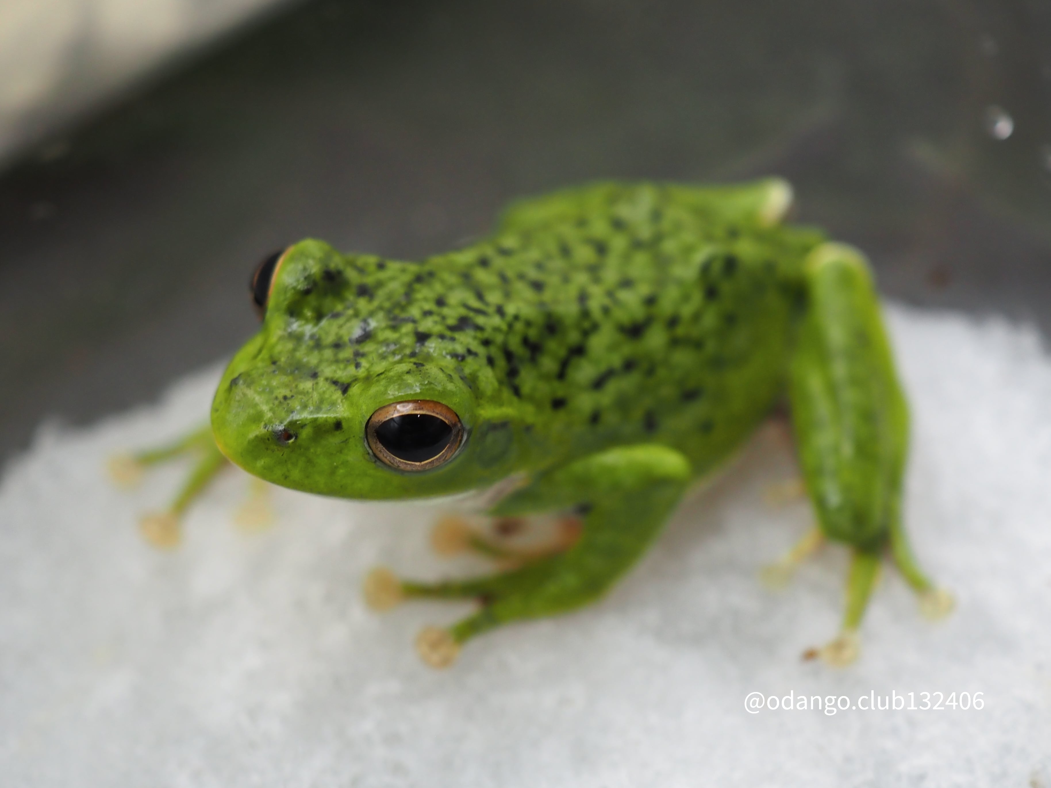黄緑色の体に黒色のスポットが散りばめられている美しい個体です。