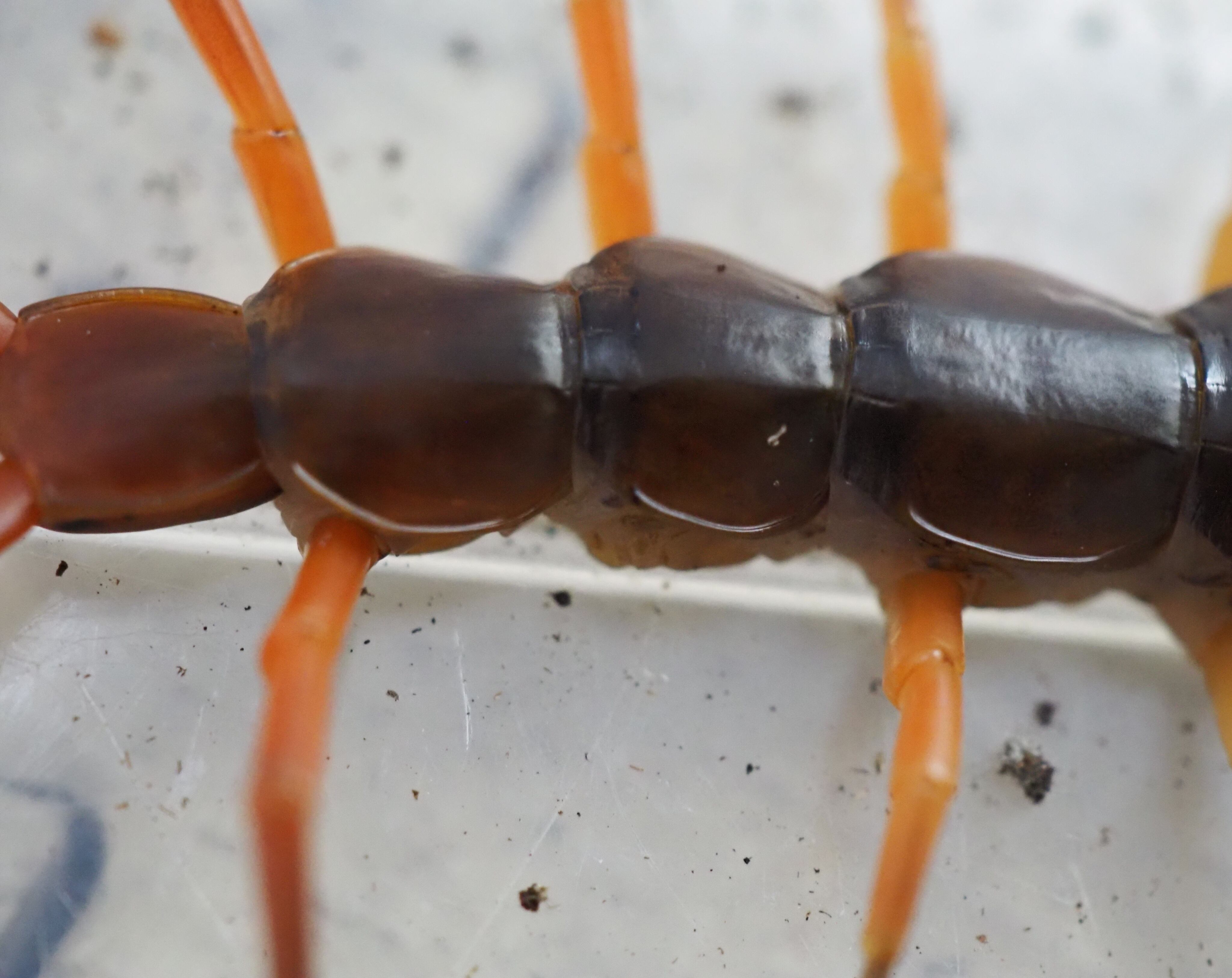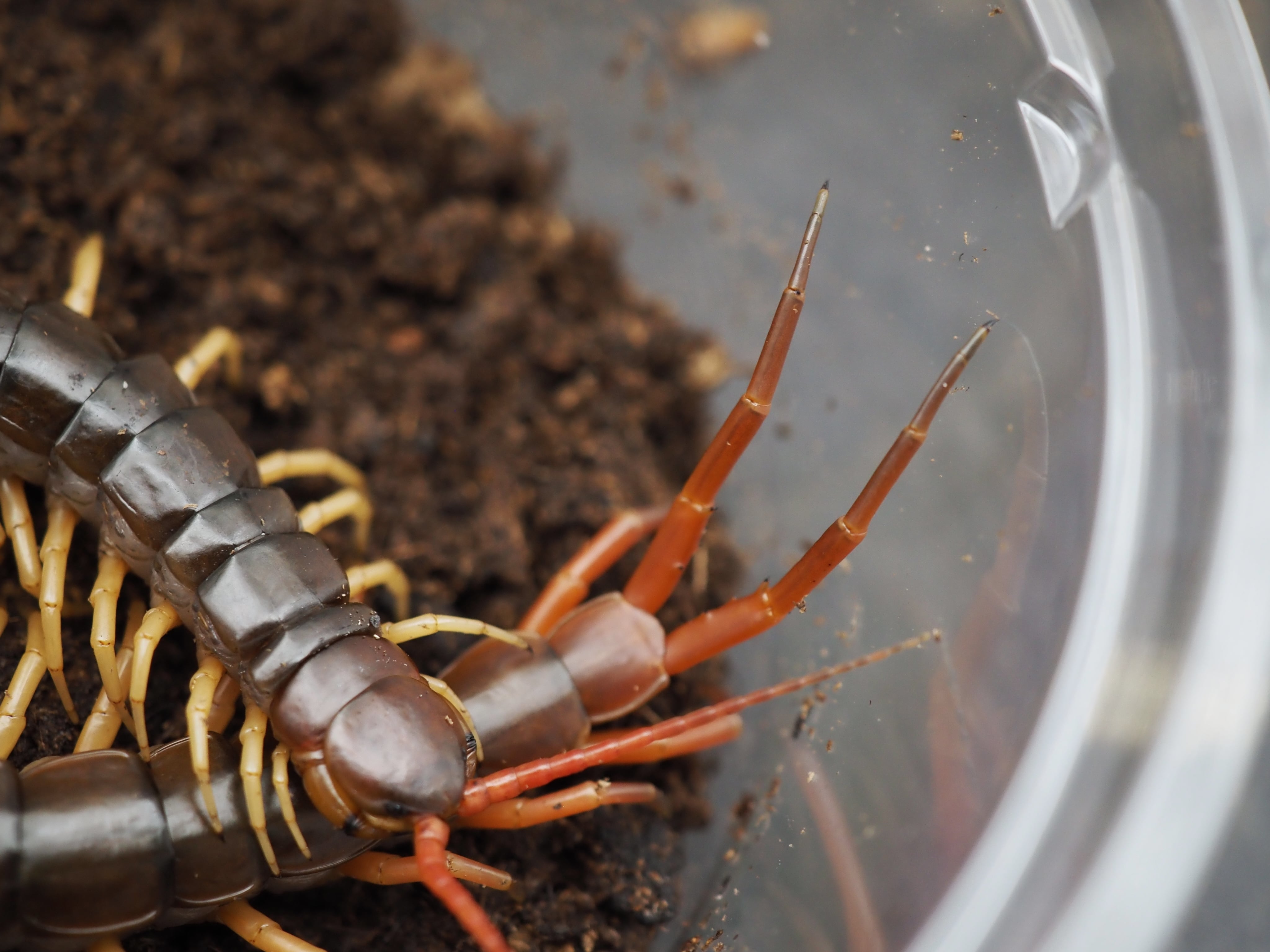 茶色みがかった体にイエローレッグの美しいムカデです。