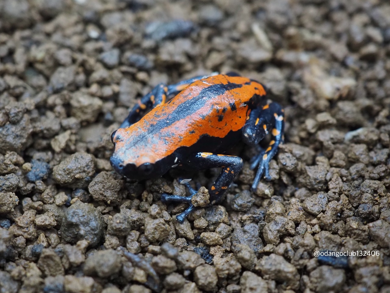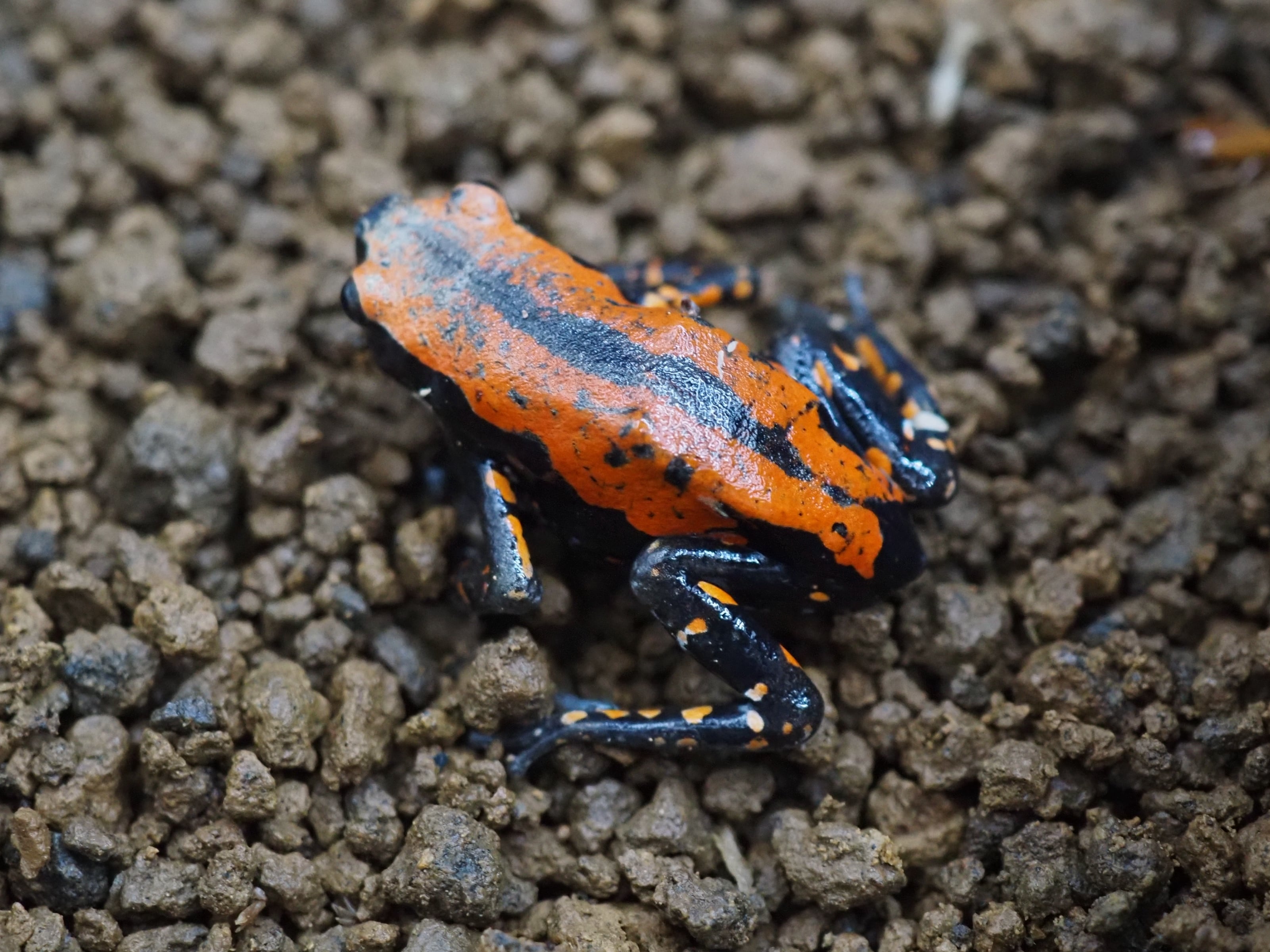 背中に赤色が滲む美しいカエルです。