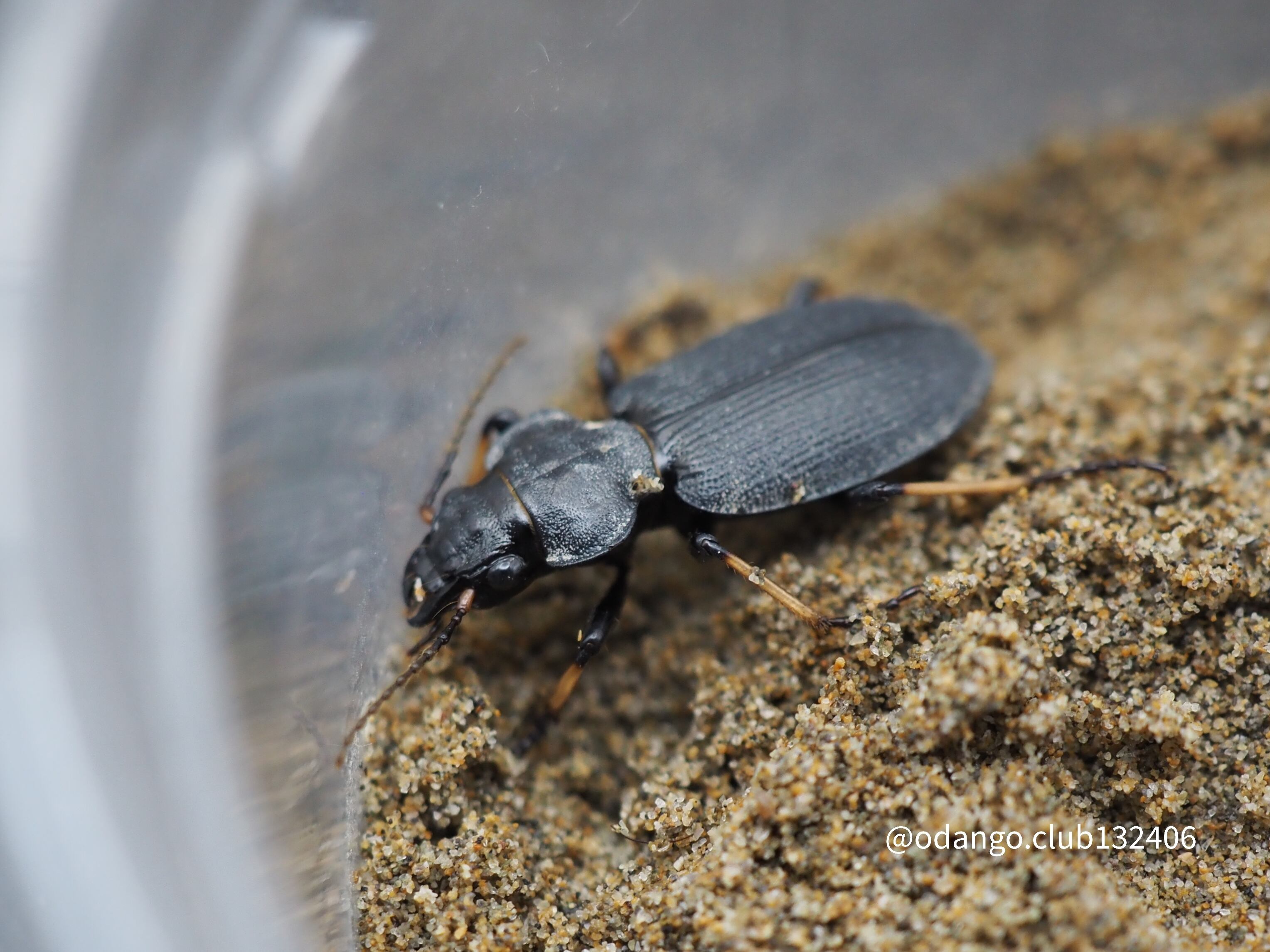 格好良い牙のある黄色と黒色の歩脚が特徴的な昆虫です。