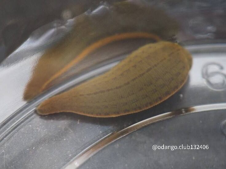 通常の個体は黒茶色のヒルですが、色素が薄くハイポのような見た目をしております。