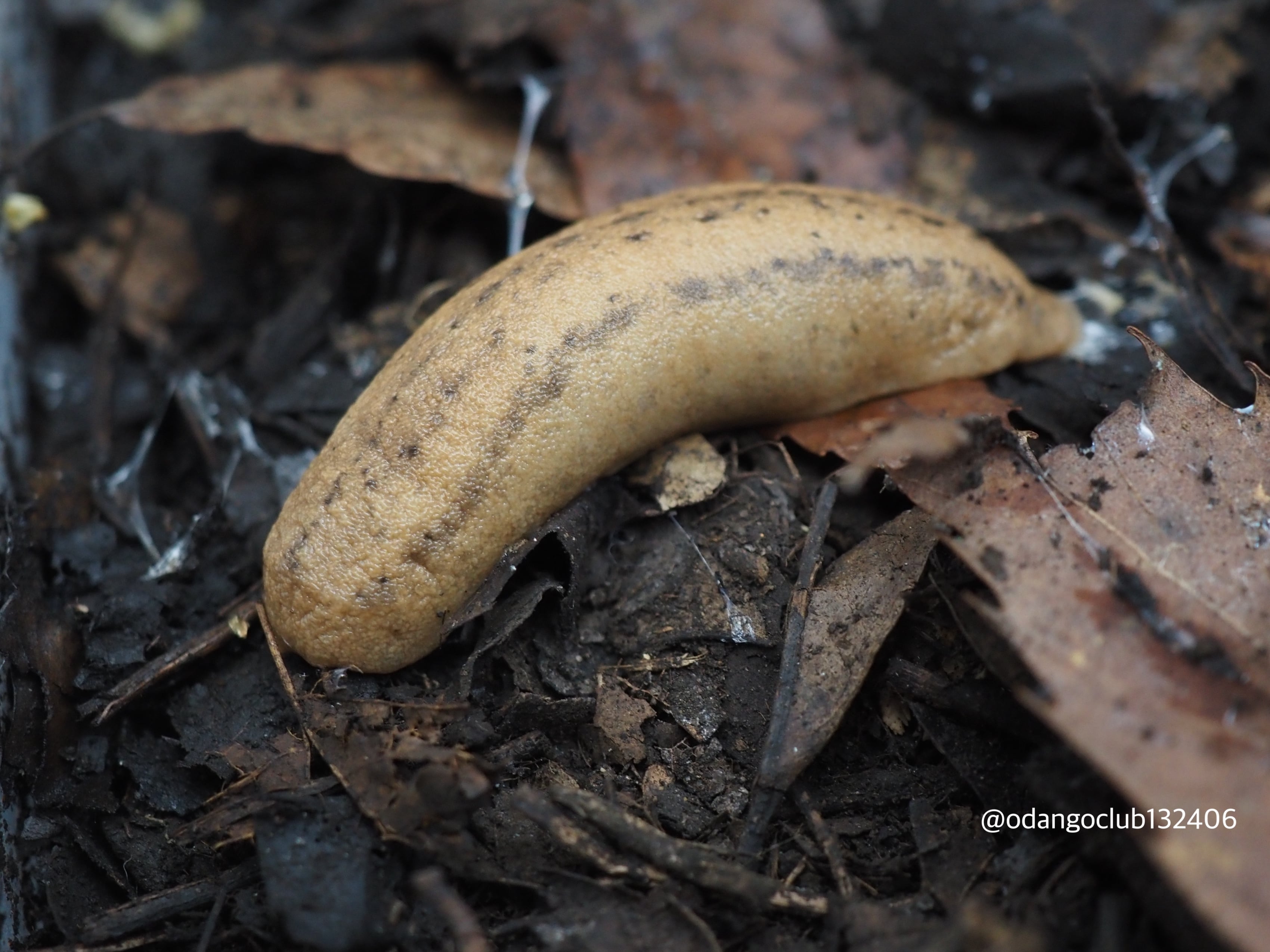 透明感のある白色に黒色のストライプが入るナメクジです。