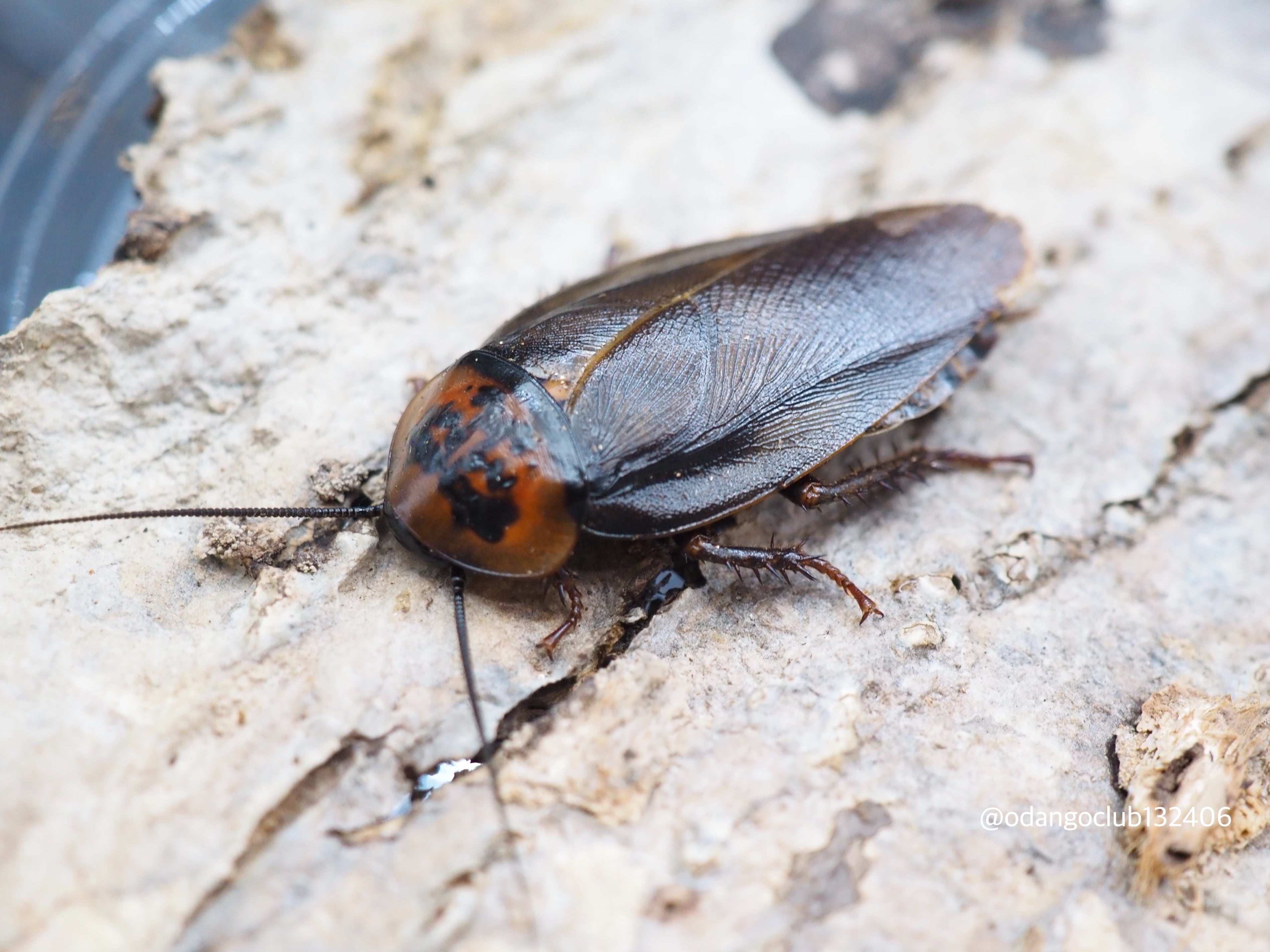 成虫は頭部がオレンジ色になる大変美しいゴキブリです。